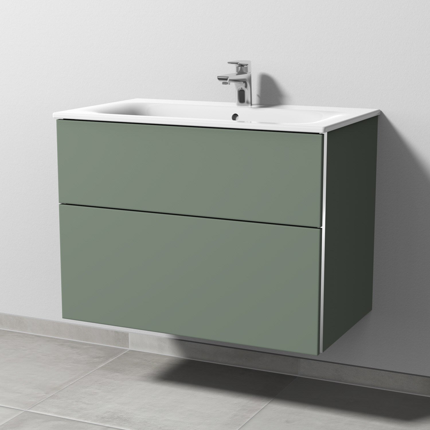 Sanipa 3way Waschtischunterbau für Keramik-Waschtisch Renova Plan Slim 80 cm, 2 Auszüge mit Griffleisten