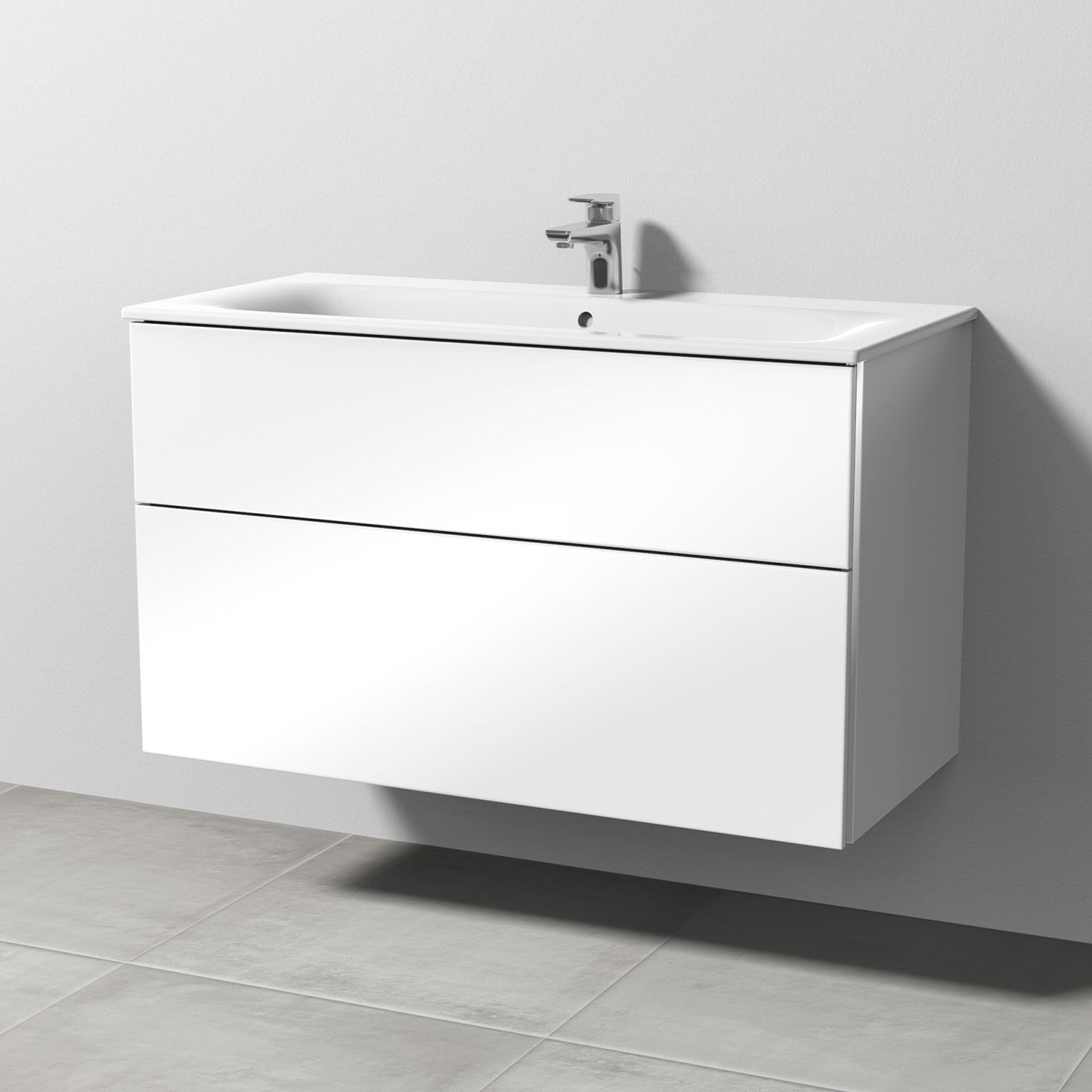 Sanipa 3way Waschtischunterbau für Keramik-Waschtisch Renova Plan Slim 100 cm, 2 Auszüge mit Griffleisten