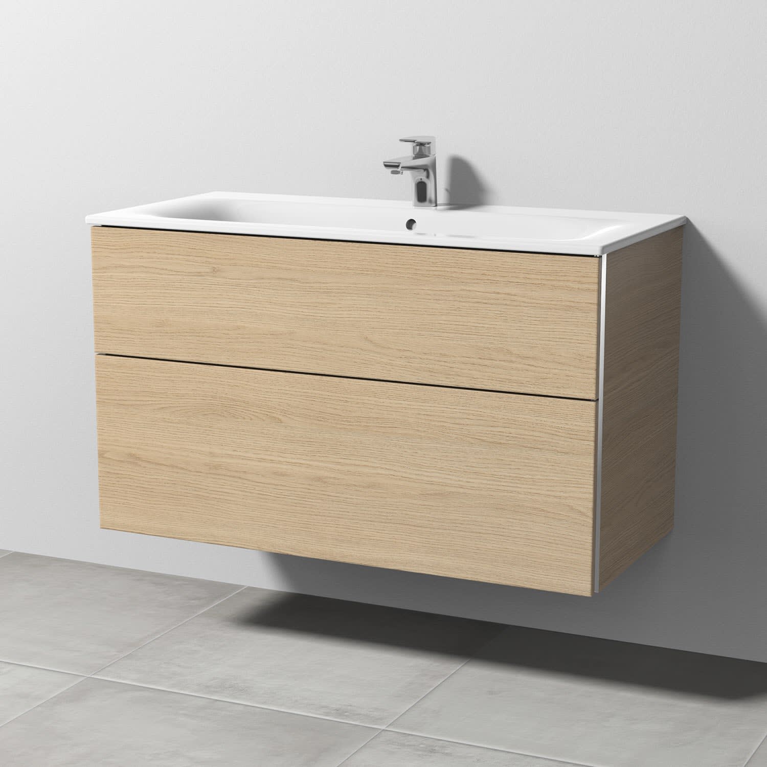 Sanipa 3way Waschtischunterbau für Keramik-Waschtisch Renova Plan Slim 100 cm, 2 Auszüge mit Griffleisten