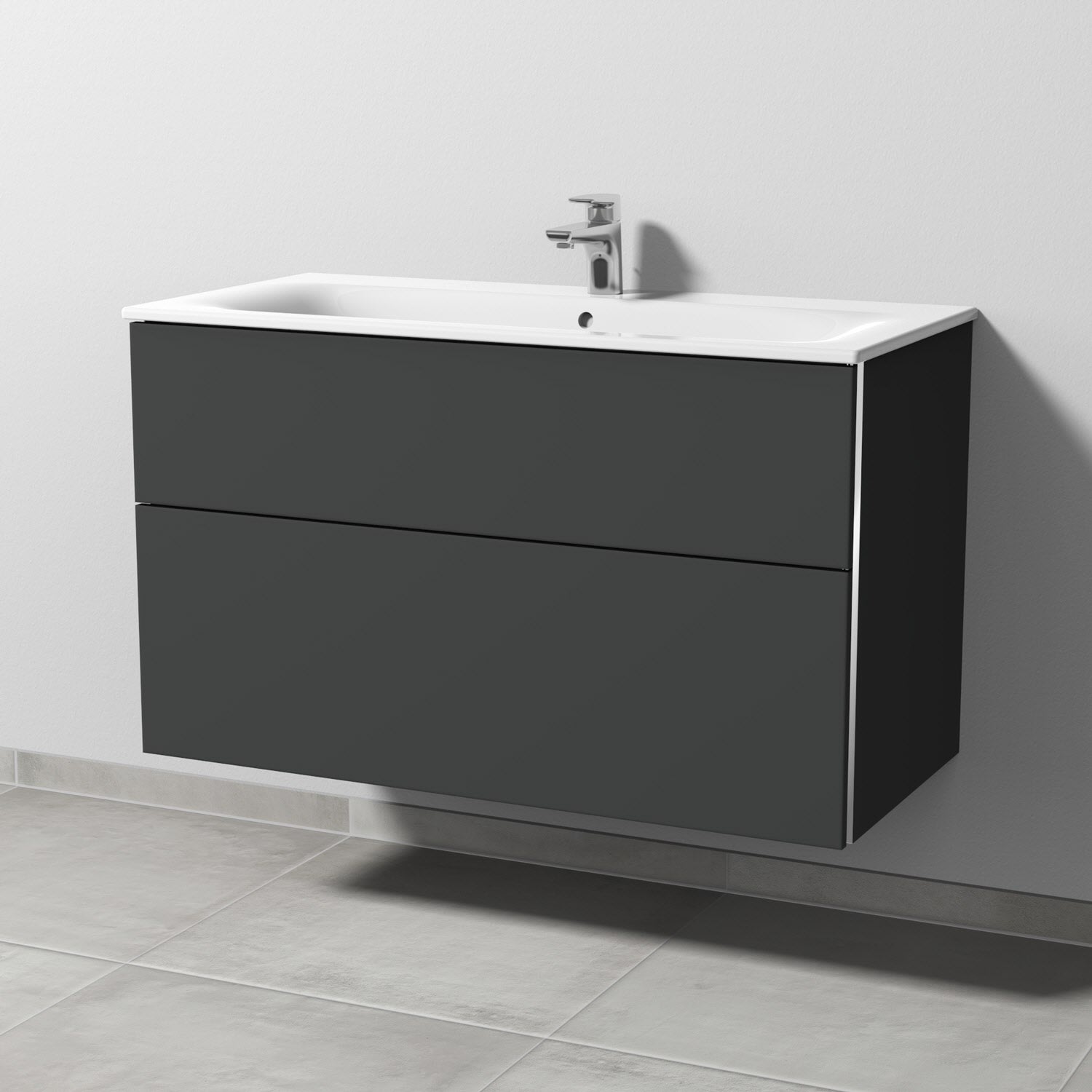 Sanipa 3way Waschtischunterbau für Keramik-Waschtisch Renova Plan Slim 100 cm, 2 Auszüge mit Griffleisten