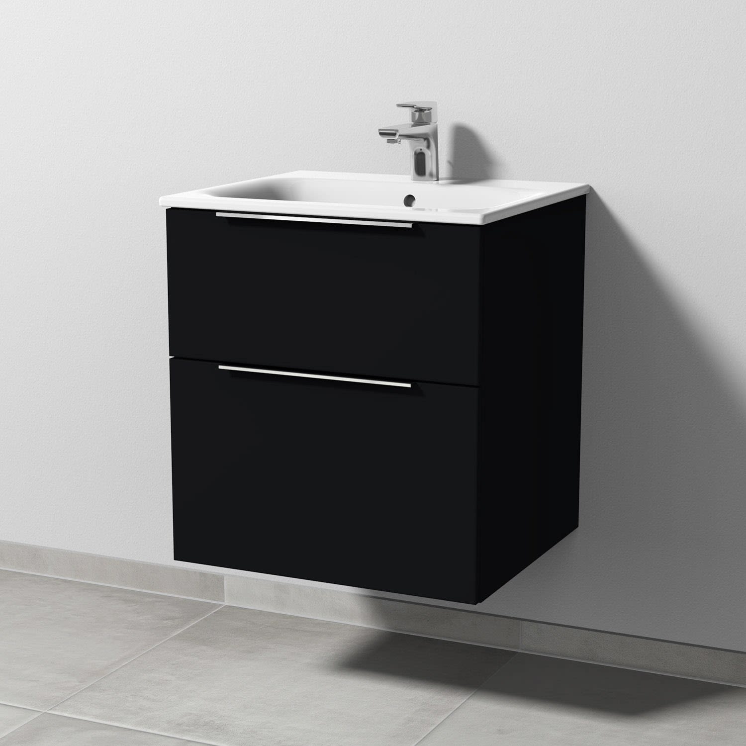 Sanipa 3way Waschtischunterbau für Keramik-Waschtisch Renova Plan Slim 55 cm, 2 Auszüge mit Aufsatzgriff
