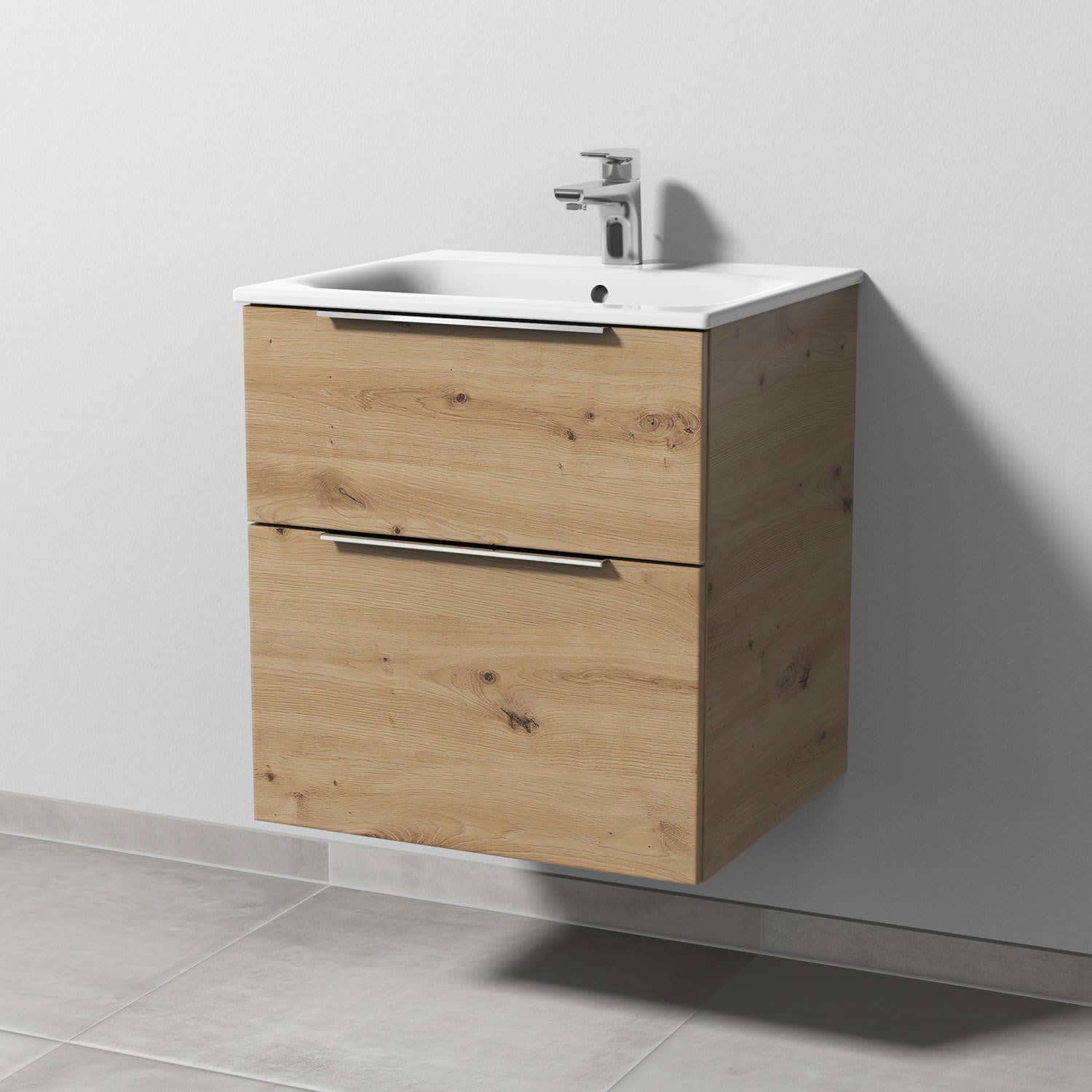 Sanipa 3way Waschtischunterbau für Keramik-Waschtisch Renova Plan Slim 55 cm, 2 Auszüge mit Aufsatzgriff