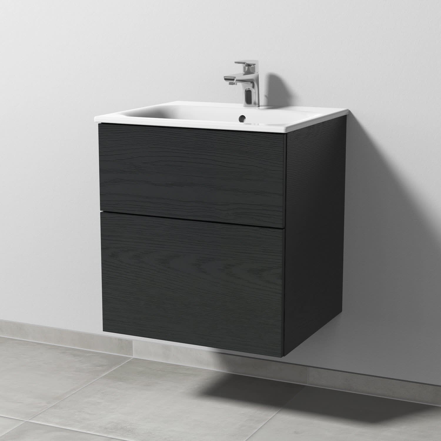 Sanipa 3way Waschtischunterbau für Keramik-Waschtisch Renova Plan Slim 55 cm, 2 Auszüge mit Push to open
