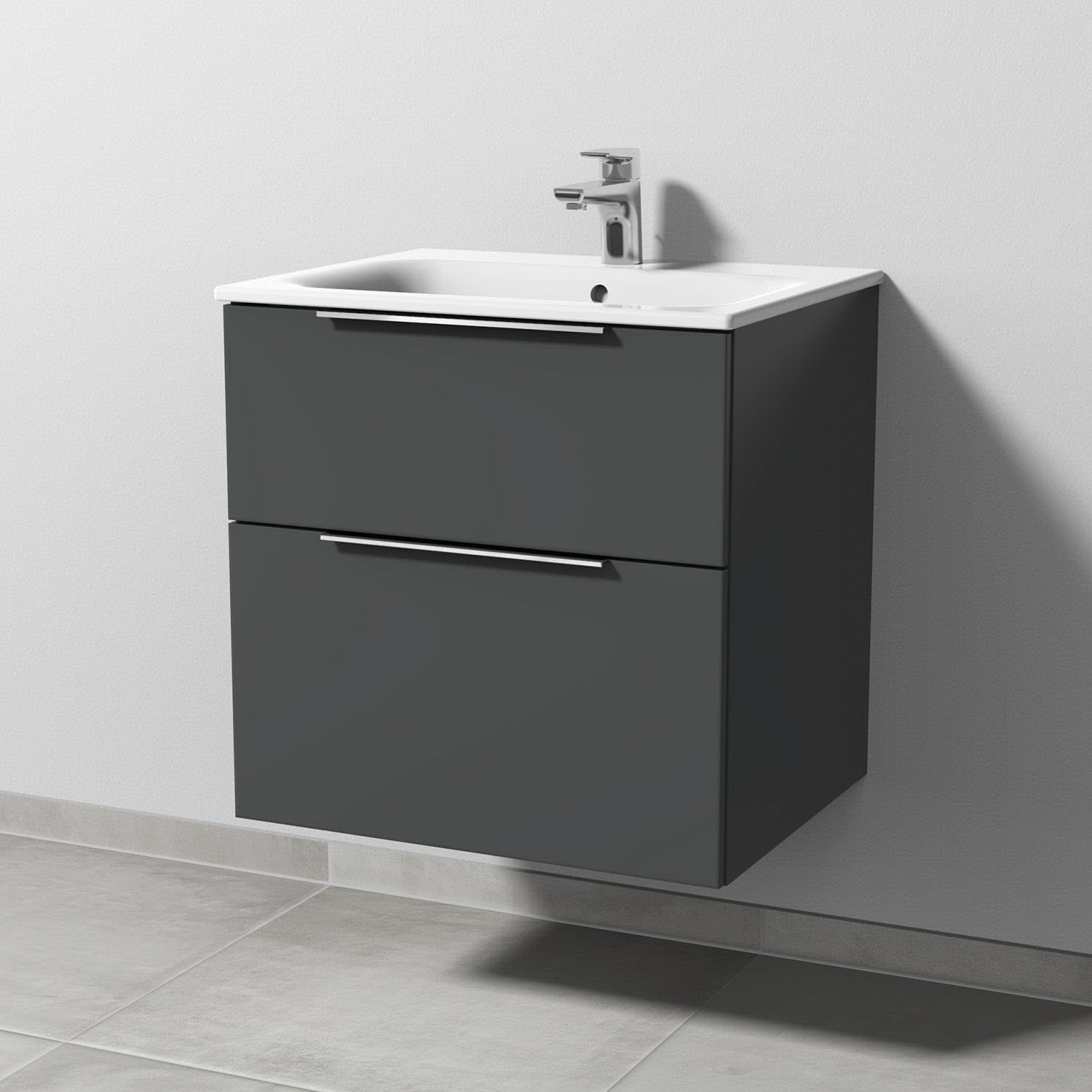 Sanipa 3way Waschtischunterbau für Keramik-Waschtisch Renova Plan Slim 60 cm, 2 Auszüge mit Aufsatzgriff