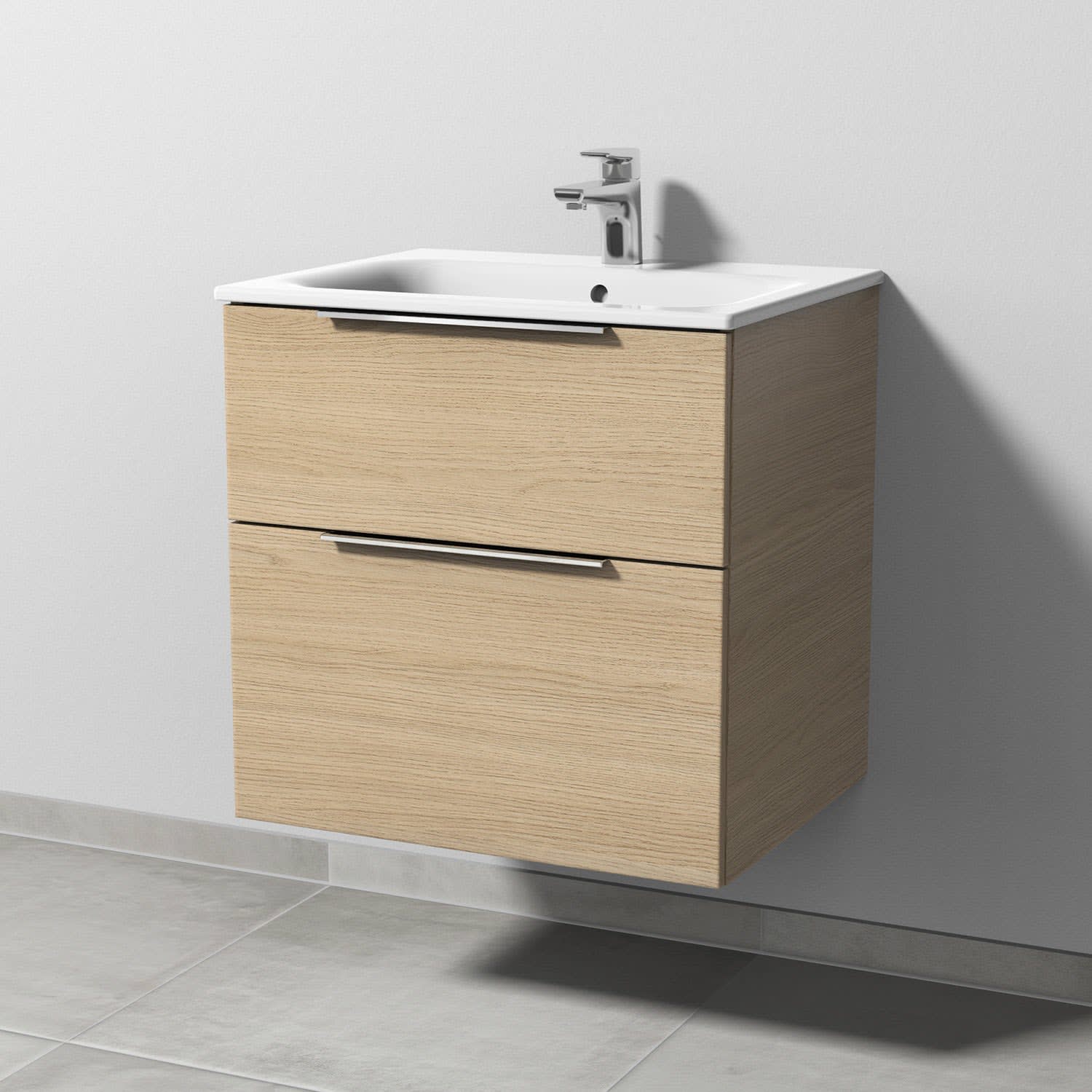 Sanipa 3way Waschtischunterbau für Keramik-Waschtisch Renova Plan Slim 60 cm, 2 Auszüge mit Aufsatzgriff