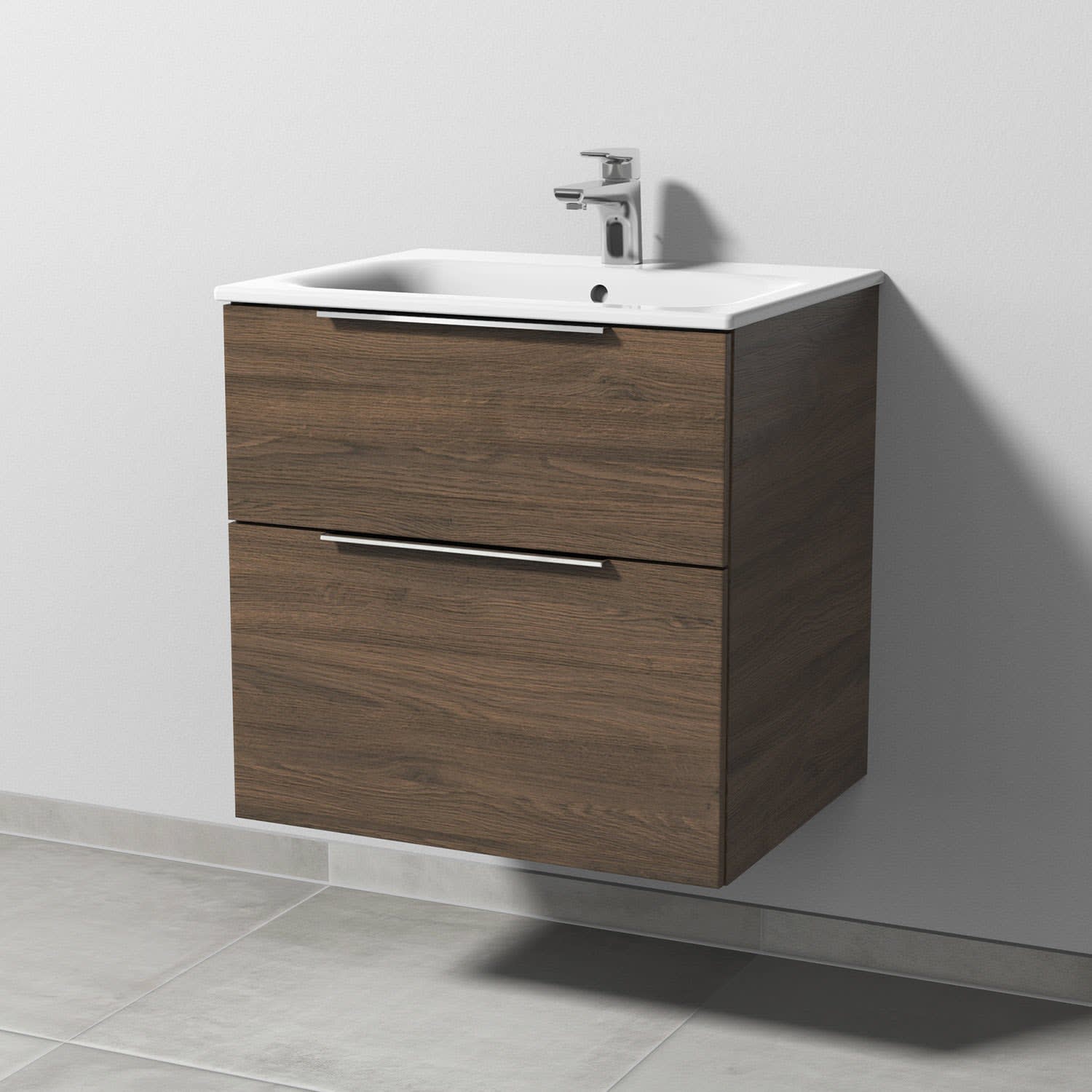 Sanipa 3way Waschtischunterbau für Keramik-Waschtisch Renova Plan Slim 60 cm, 2 Auszüge mit Aufsatzgriff