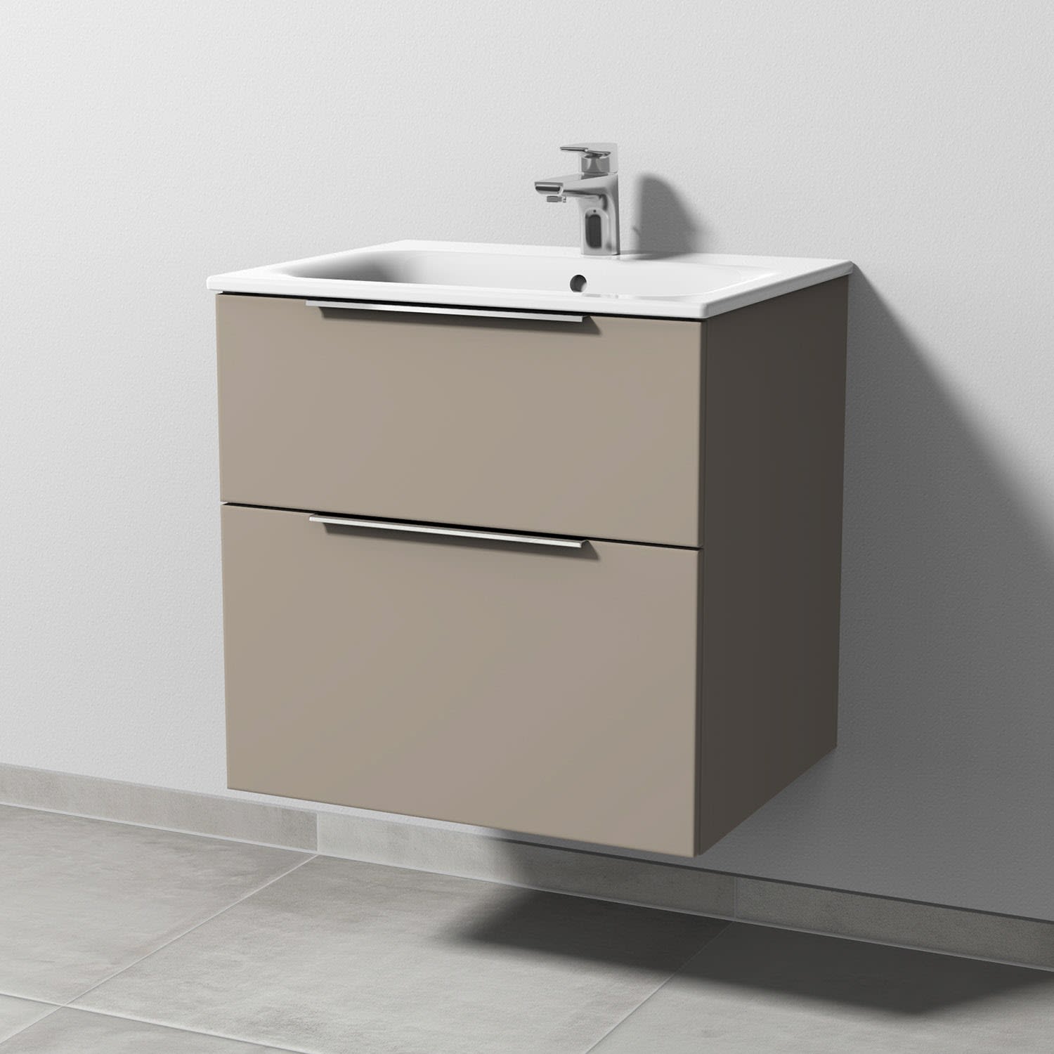 Sanipa 3way Waschtischunterbau für Keramik-Waschtisch Renova Plan Slim 60 cm, 2 Auszüge mit Aufsatzgriff