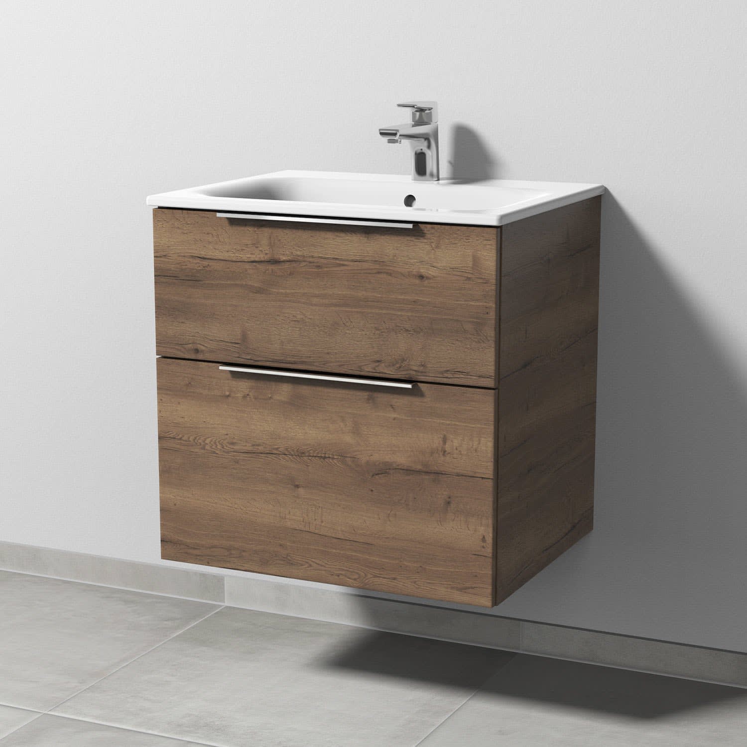 Sanipa 3way Waschtischunterbau für Keramik-Waschtisch Renova Plan Slim 60 cm, 2 Auszüge mit Aufsatzgriff