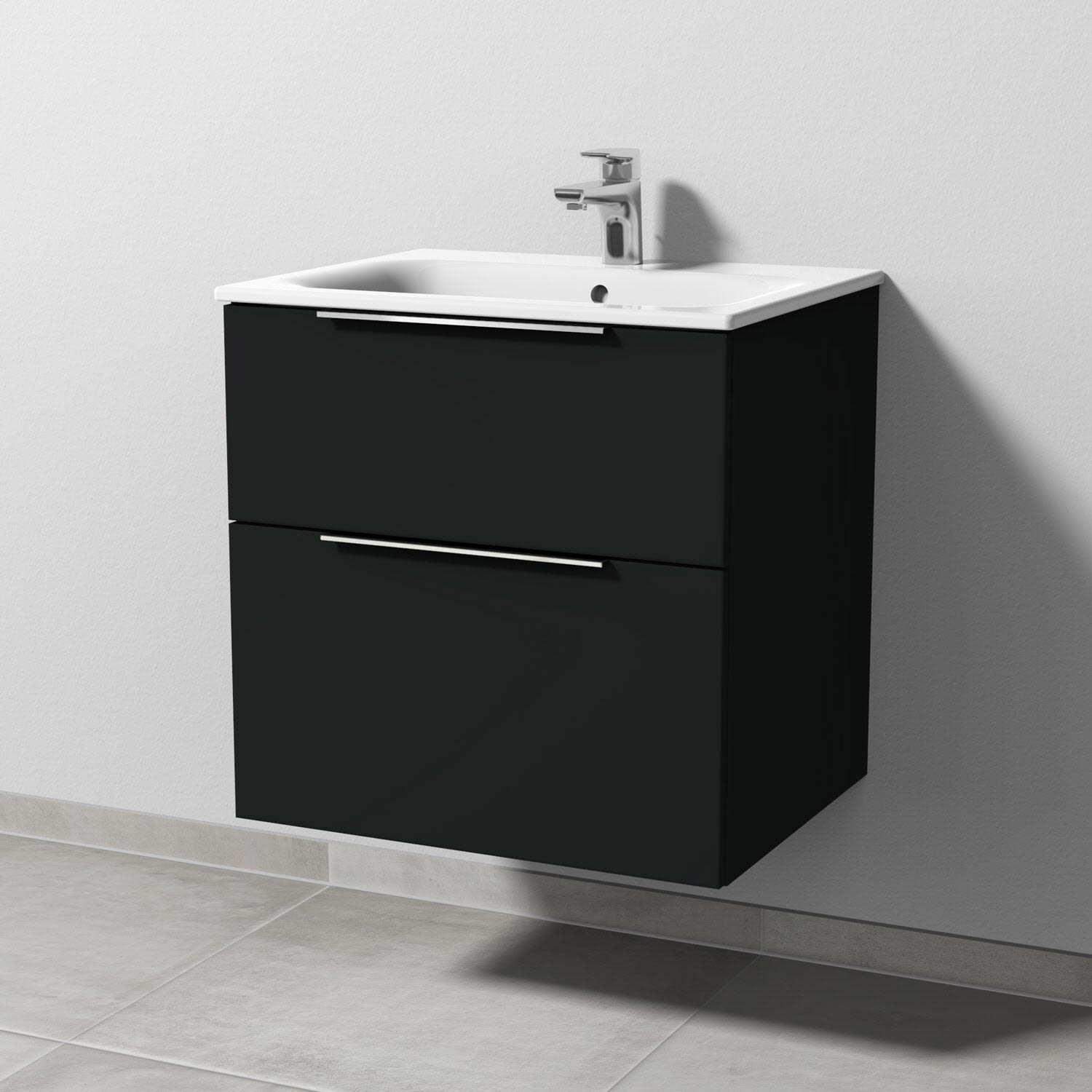 Sanipa 3way Waschtischunterbau für Keramik-Waschtisch Renova Plan Slim 60 cm, 2 Auszüge mit Aufsatzgriff