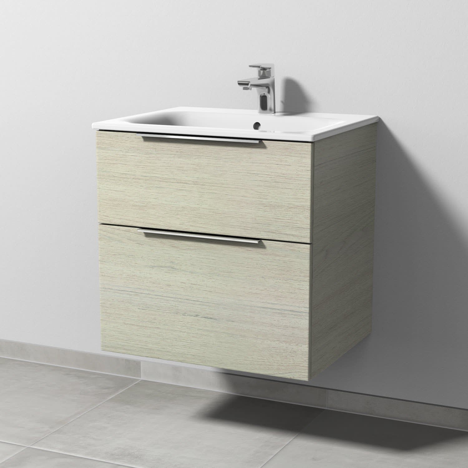 Sanipa 3way Waschtischunterbau für Keramik-Waschtisch Renova Plan Slim 60 cm, 2 Auszüge mit Aufsatzgriff