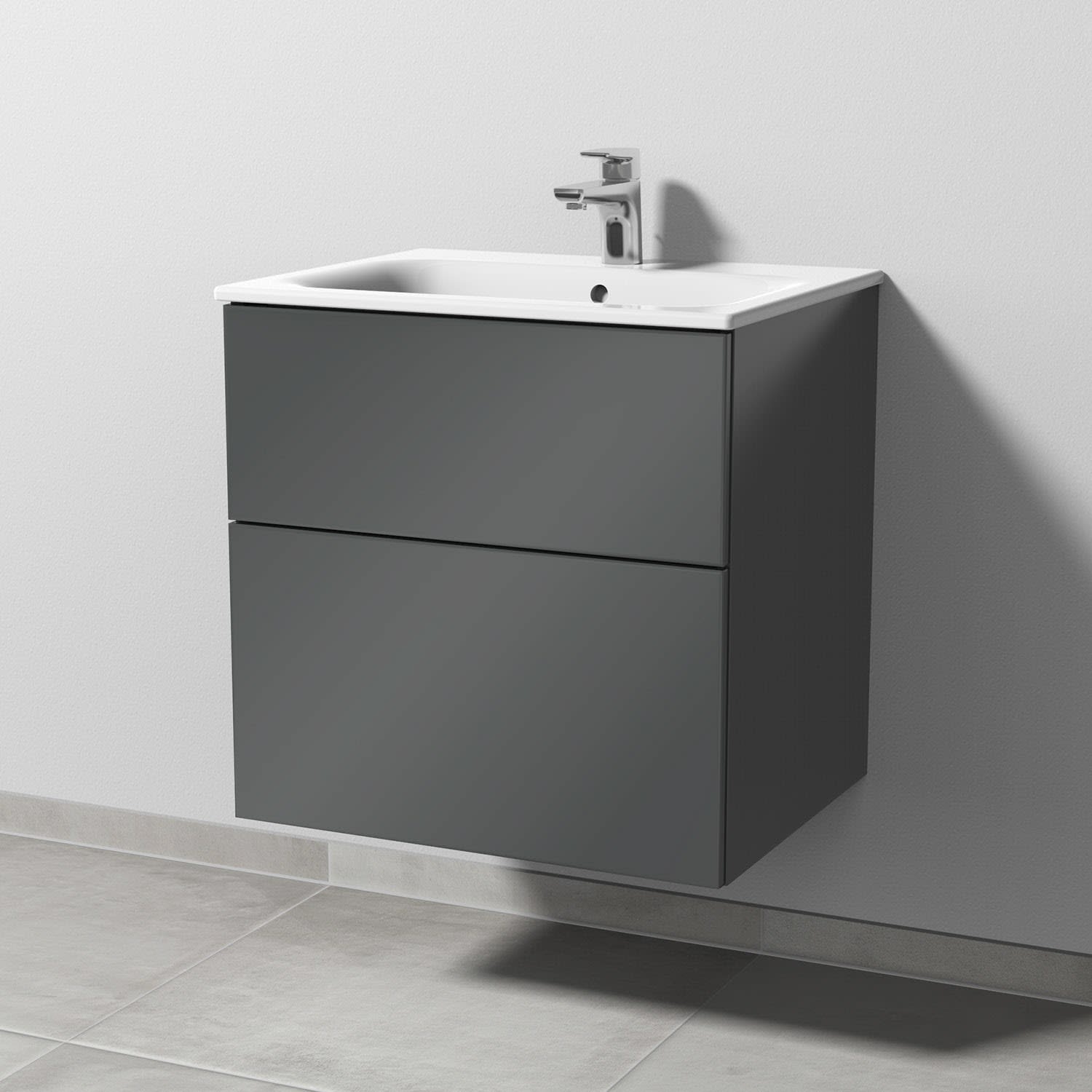 Sanipa 3way Waschtischunterbau für Keramik-Waschtisch Renova Plan Slim 60 cm, 2 Auszüge mit Push to open