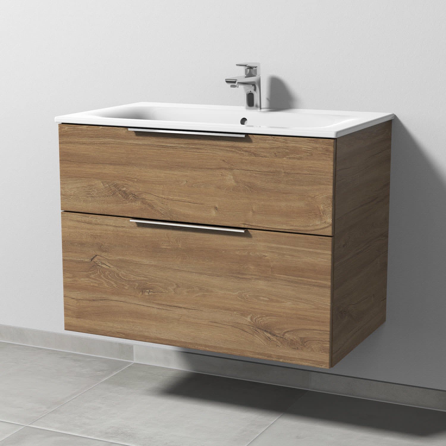 Sanipa 3way Waschtischunterbau für Keramik-Waschtisch Renova Plan Slim 80 cm, 2 Auszüge mit Aufsatzgriff