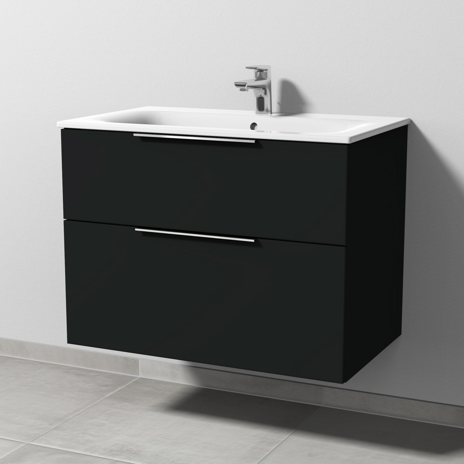 Sanipa 3way Waschtischunterbau für Keramik-Waschtisch Renova Plan Slim 80 cm, 2 Auszüge mit Aufsatzgriff