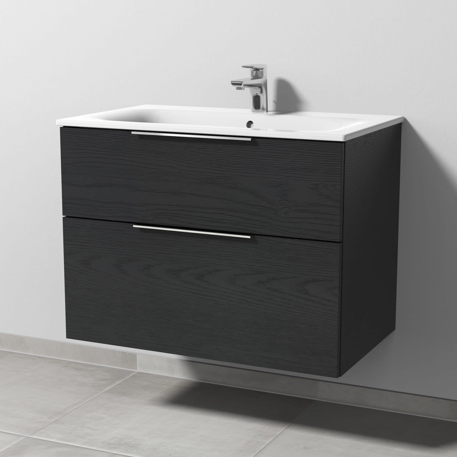 Sanipa 3way Waschtischunterbau für Keramik-Waschtisch Renova Plan Slim 80 cm, 2 Auszüge mit Aufsatzgriff