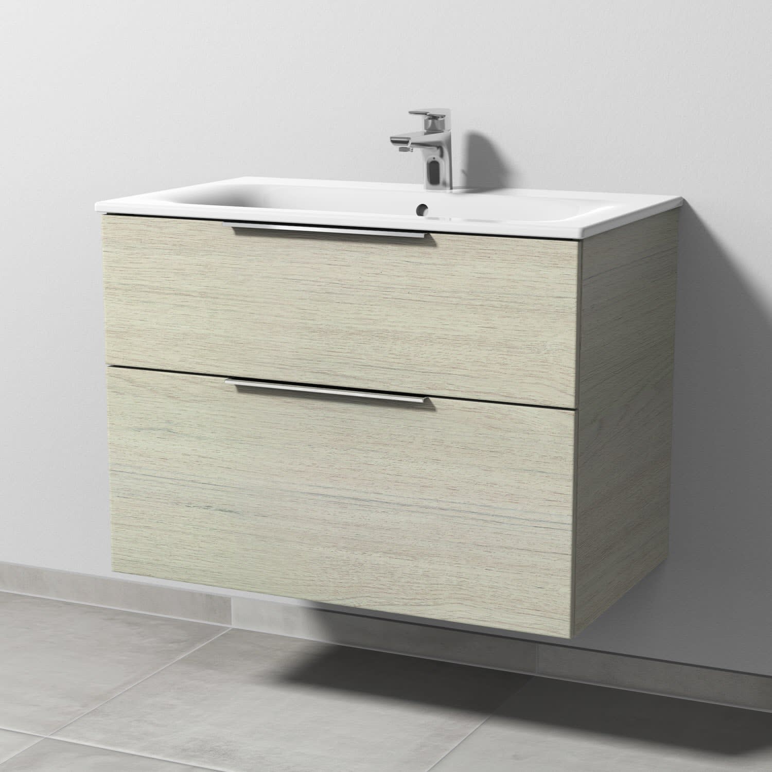 Sanipa 3way Waschtischunterbau für Keramik-Waschtisch Renova Plan Slim 80 cm, 2 Auszüge mit Aufsatzgriff