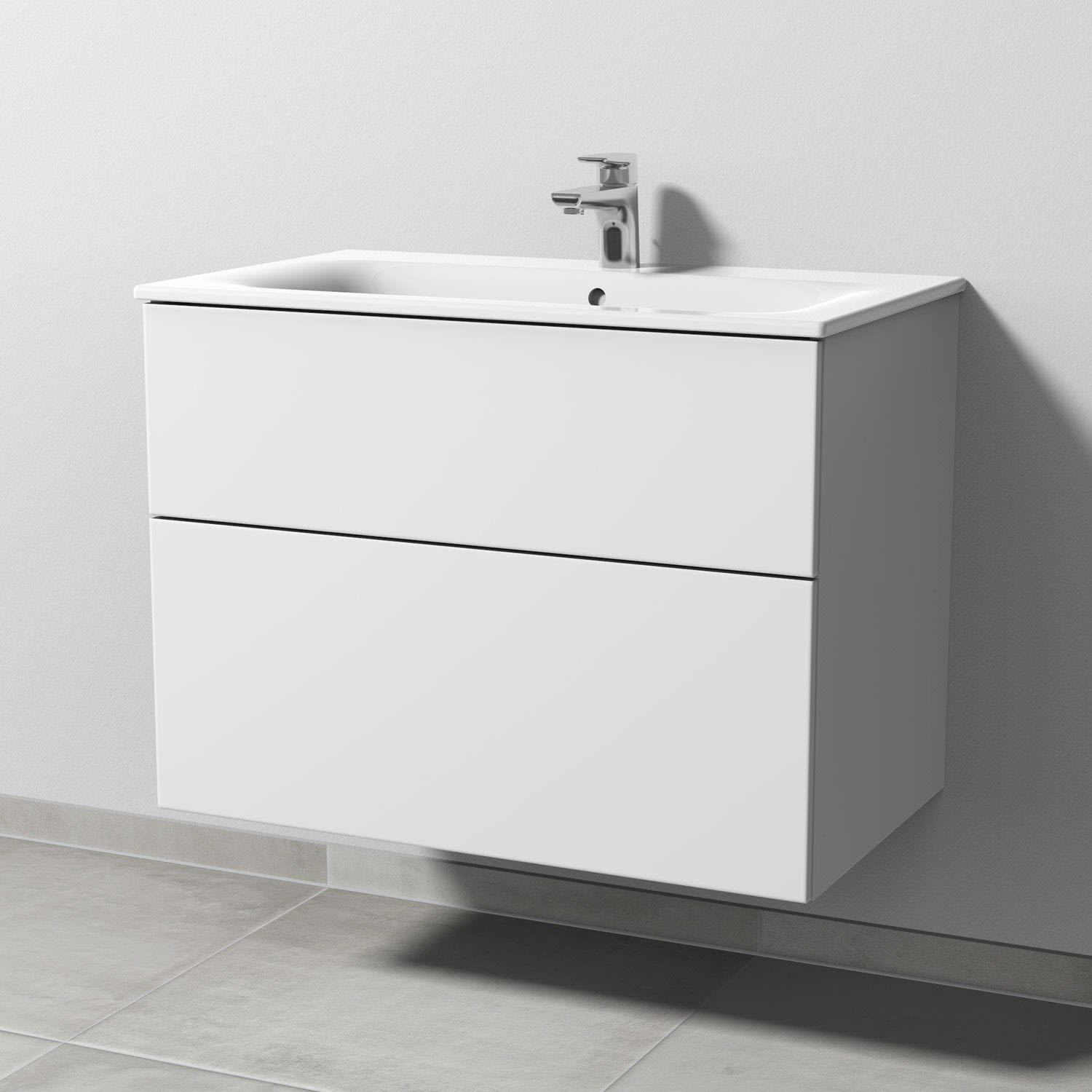 Sanipa 3way Waschtischunterbau für Keramik-Waschtisch Renova Plan Slim 80 cm, 2 Auszüge mit Push to open