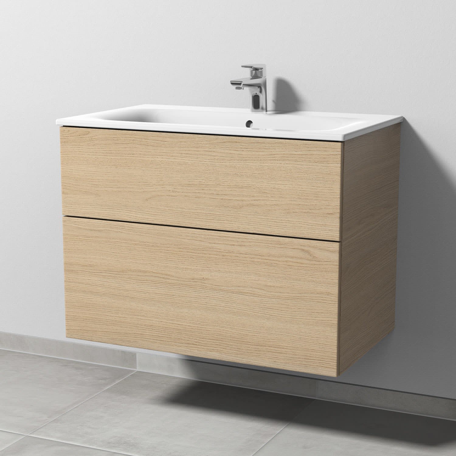 Sanipa 3way Waschtischunterbau für Keramik-Waschtisch Renova Plan Slim 80 cm, 2 Auszüge mit Push to open