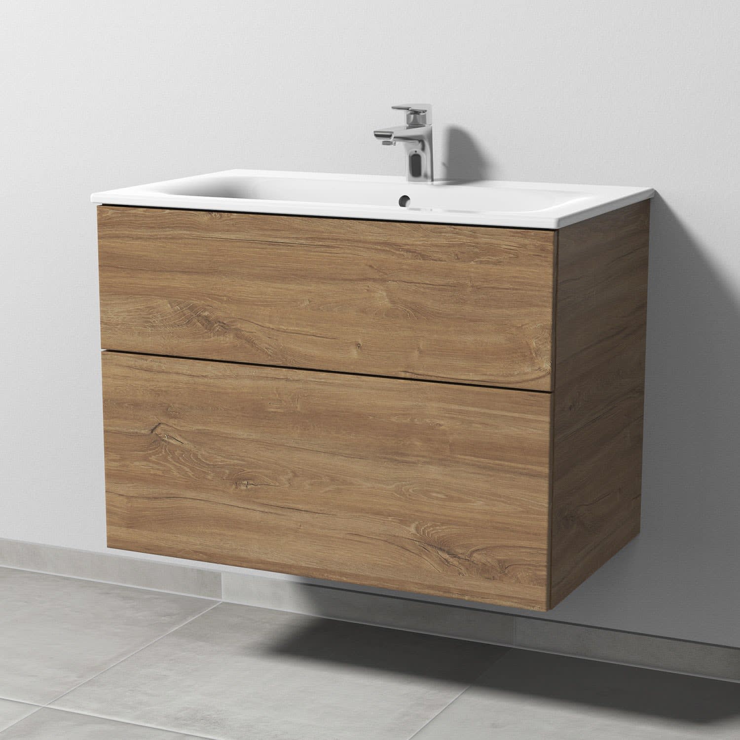 Sanipa 3way Waschtischunterbau für Keramik-Waschtisch Renova Plan Slim 80 cm, 2 Auszüge mit Push to open