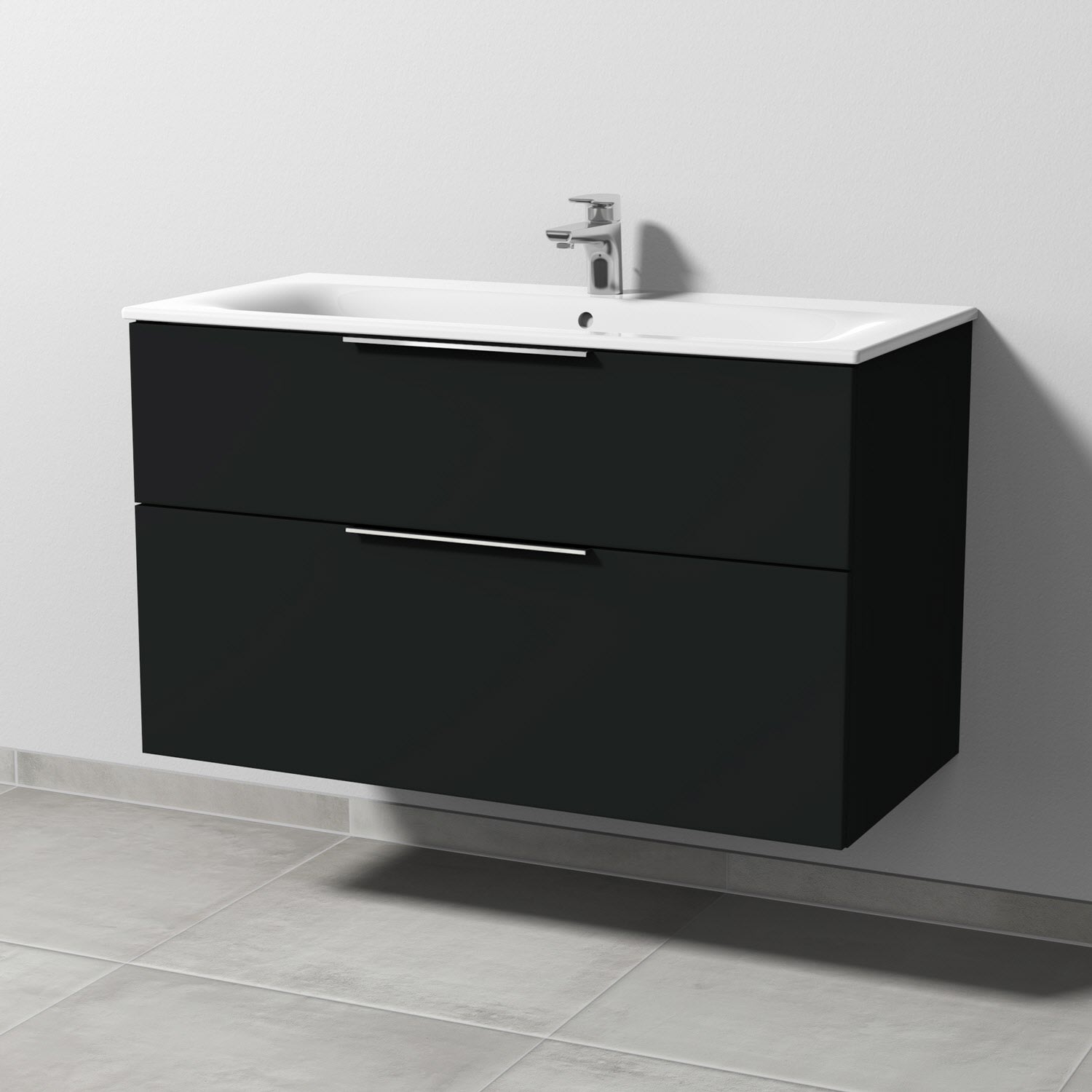 Sanipa 3way Waschtischunterbau für Keramik-Waschtisch Renova Plan Slim 100 cm, 2 Auszüge mit Aufsatzgriff