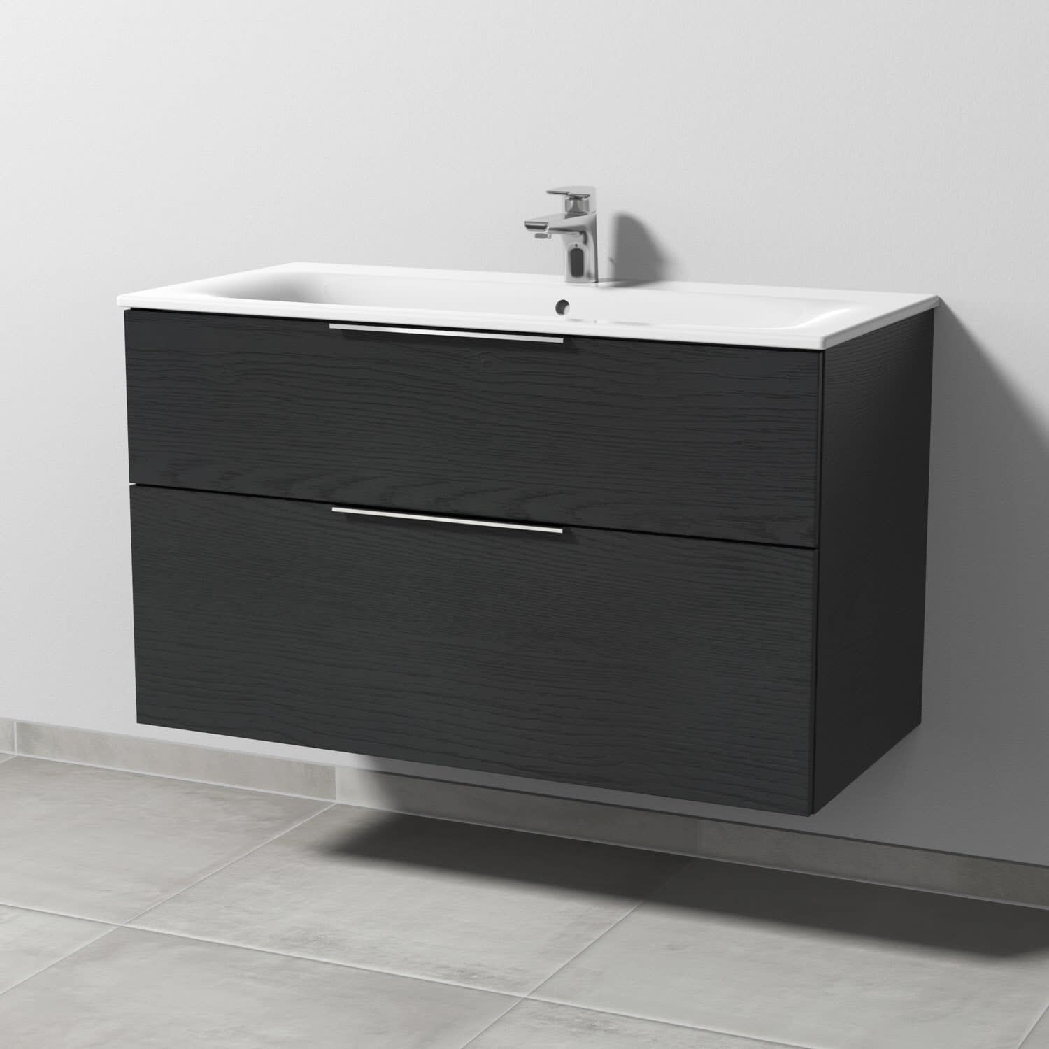 Sanipa 3way Waschtischunterbau für Keramik-Waschtisch Renova Plan Slim 100 cm, 2 Auszüge mit Aufsatzgriff