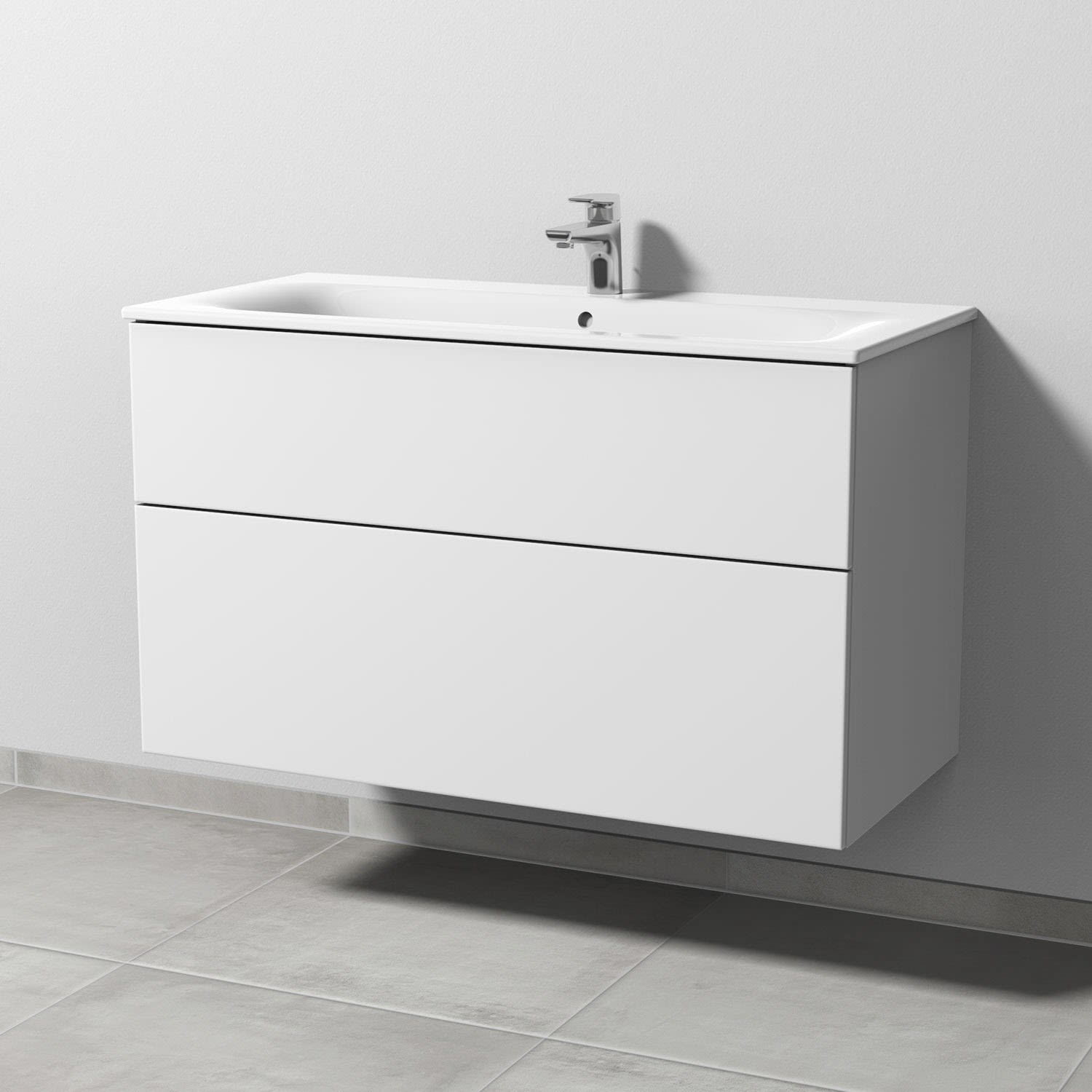Sanipa 3way Waschtischunterbau für Keramik-Waschtisch Renova Plan Slim 100 cm, 2 Auszüge mit Push to open