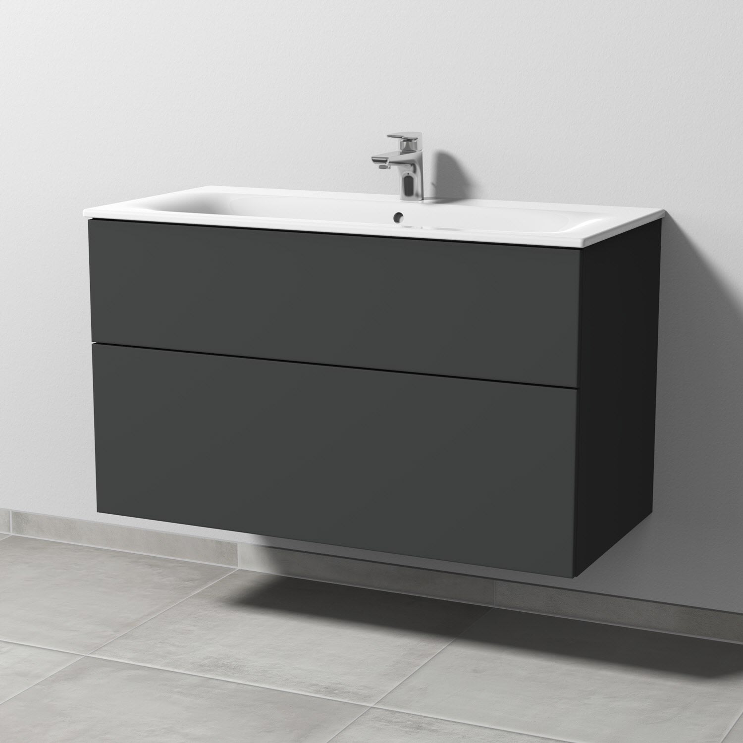 Sanipa 3way Waschtischunterbau für Keramik-Waschtisch Renova Plan Slim 100 cm, 2 Auszüge mit Push to open