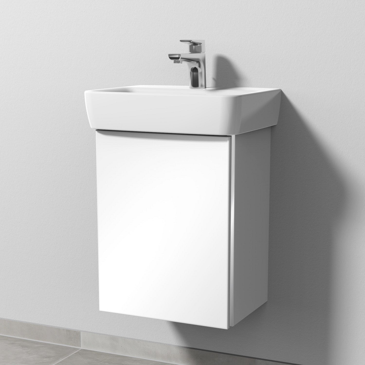 Sanipa 3way Waschtischunterbau für Keramik-Waschtisch Renova Plan 45 cm, 1 Tür, Anschlag links, mit Griffleiste