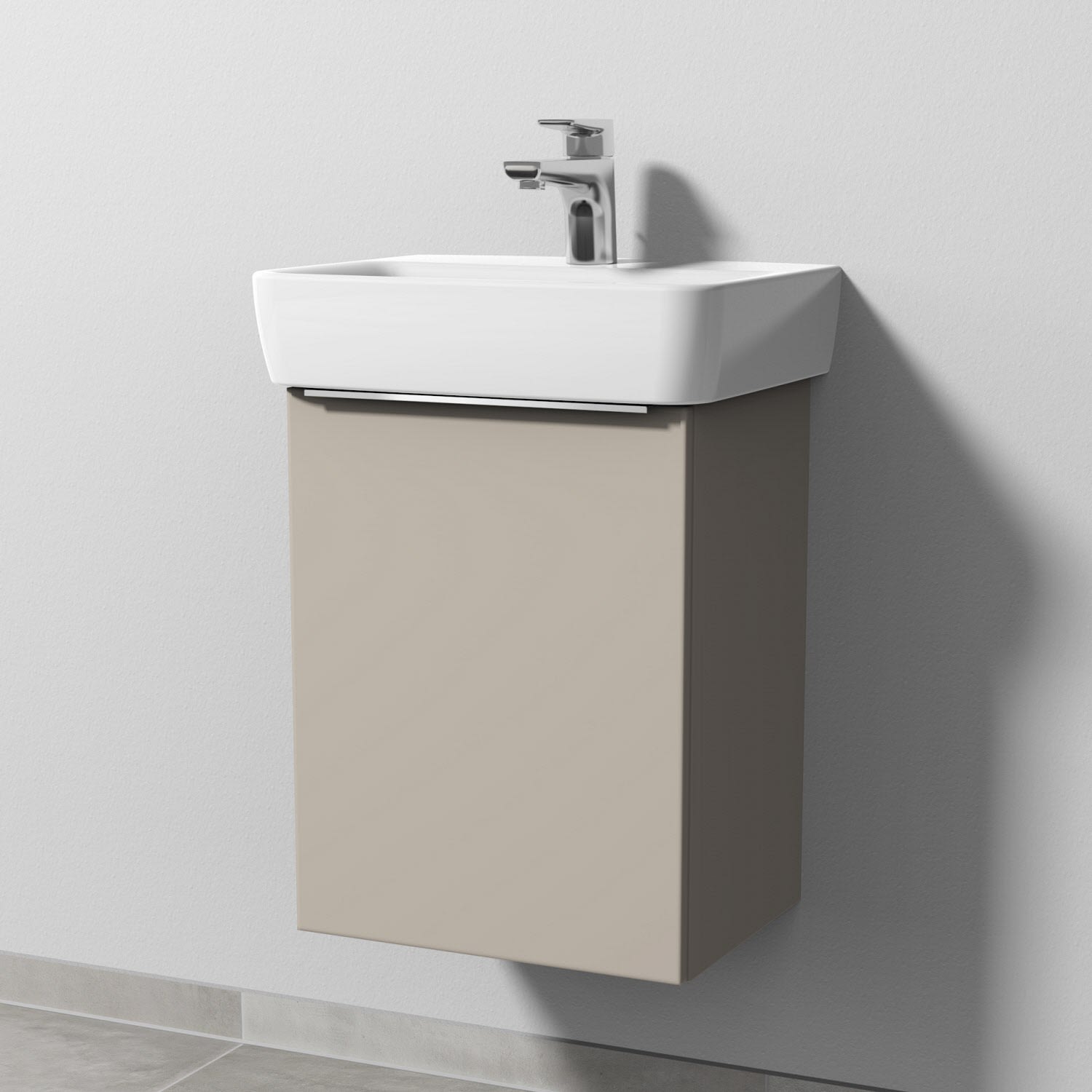 Sanipa 3way Waschtischunterbau für Keramik-Waschtisch Renova Plan 45 cm, 1 Tür, Anschlag links, mit Aufsatzgriff