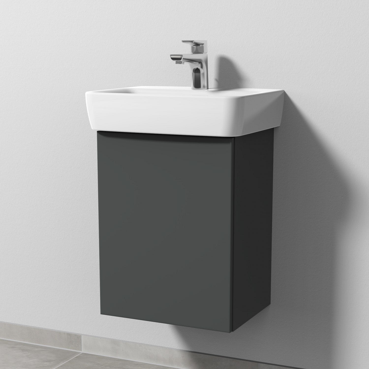 Sanipa 3way Waschtischunterbau für Keramik-Waschtisch Renova Plan 45 cm, 1 Tür, Anschlag links, mit Push to open