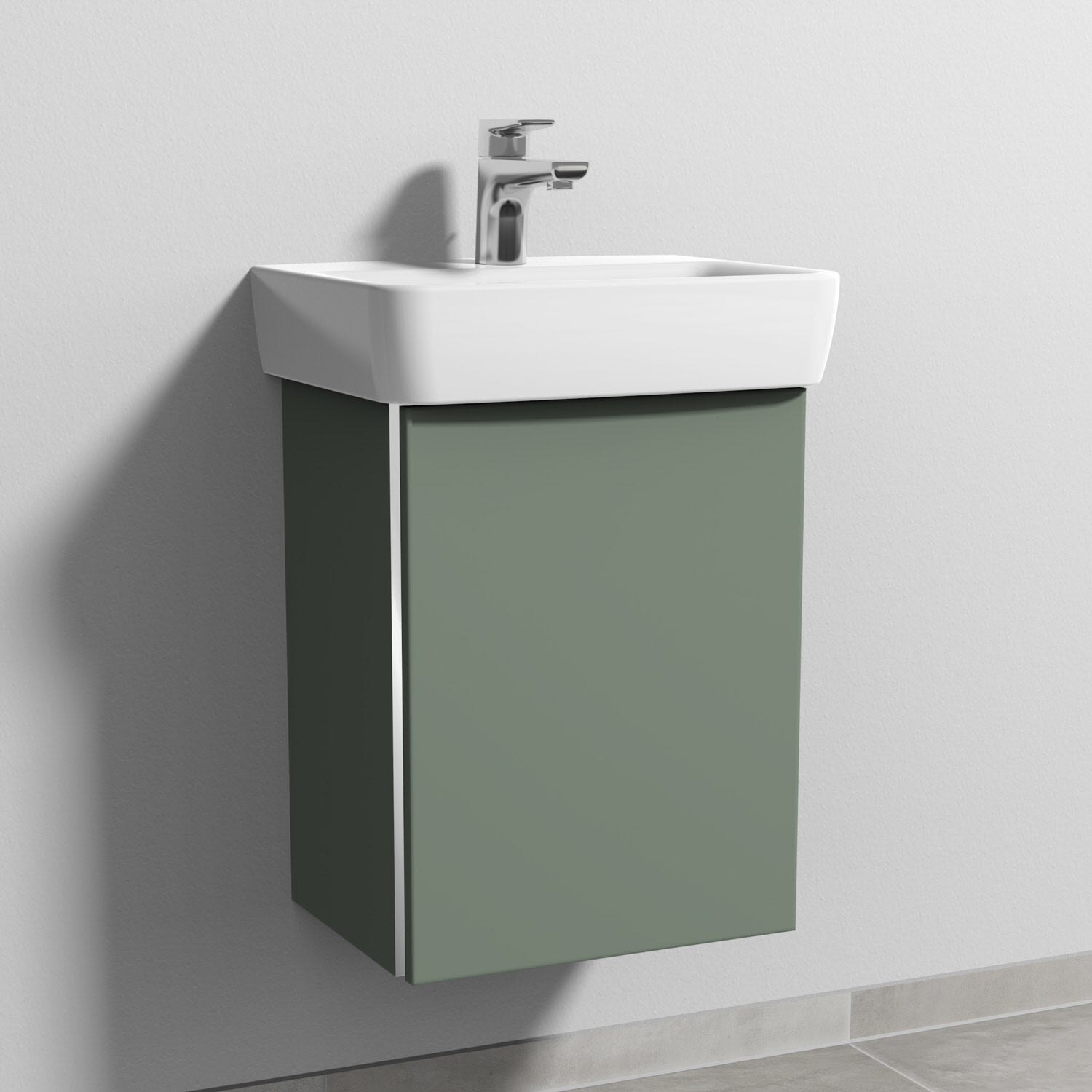 Sanipa 3way Waschtischunterbau für Keramik-Waschtisch Renova Plan 45 cm, 1 Tür, Anschlag rechts, mit Griffleiste