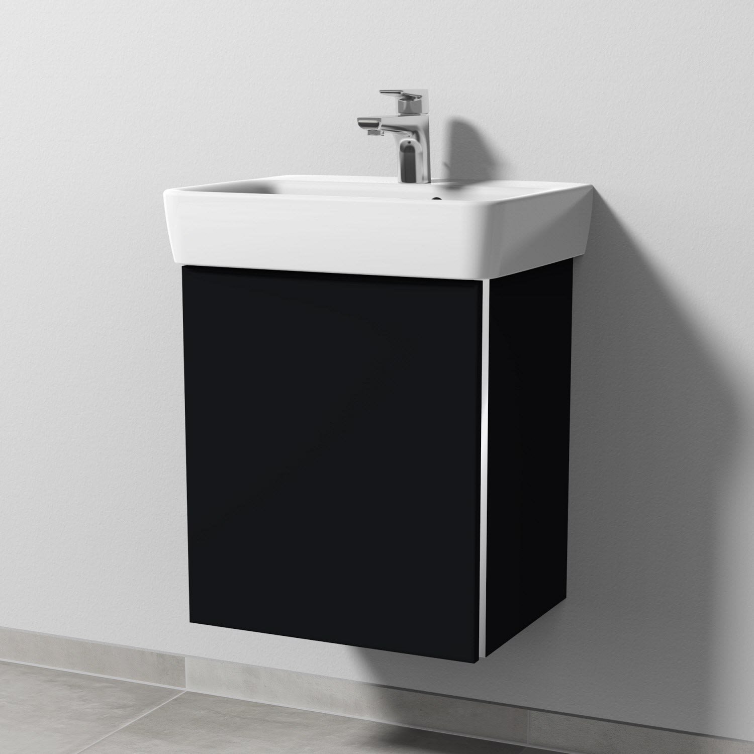 Sanipa 3way Waschtischunterbau für Keramik-Waschtisch Renova Plan 50 cm, 1 Tür, Anschlag links, mit Griffleiste