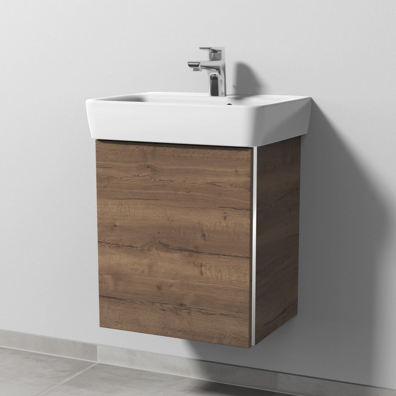 Sanipa 3way Waschtischunterbau für Keramik-Waschtisch Renova Plan 50 cm, 1 Tür, Anschlag links, mit Griffleiste