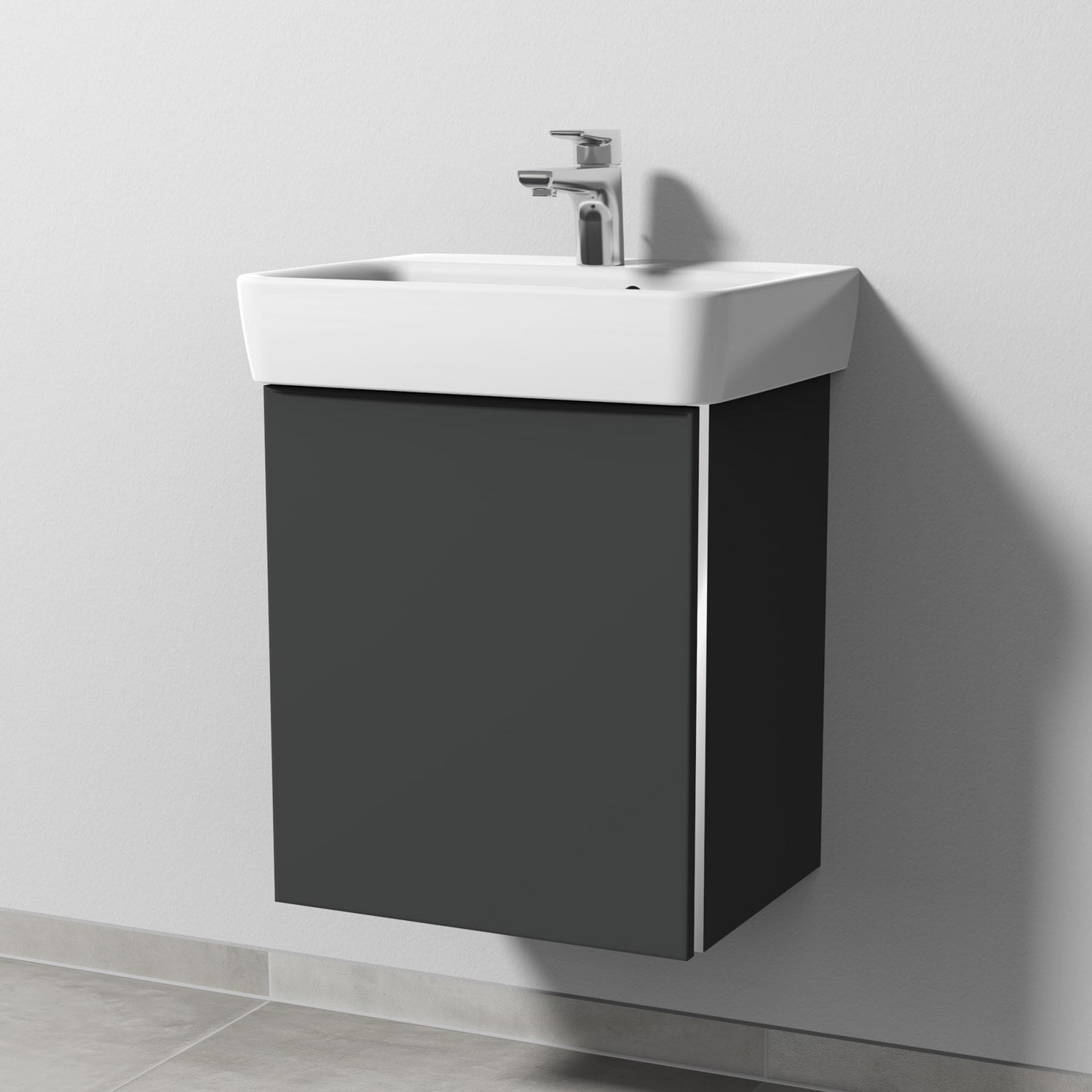 Sanipa 3way Waschtischunterbau für Keramik-Waschtisch Renova Plan 50 cm, 1 Tür, Anschlag links, mit Griffleiste