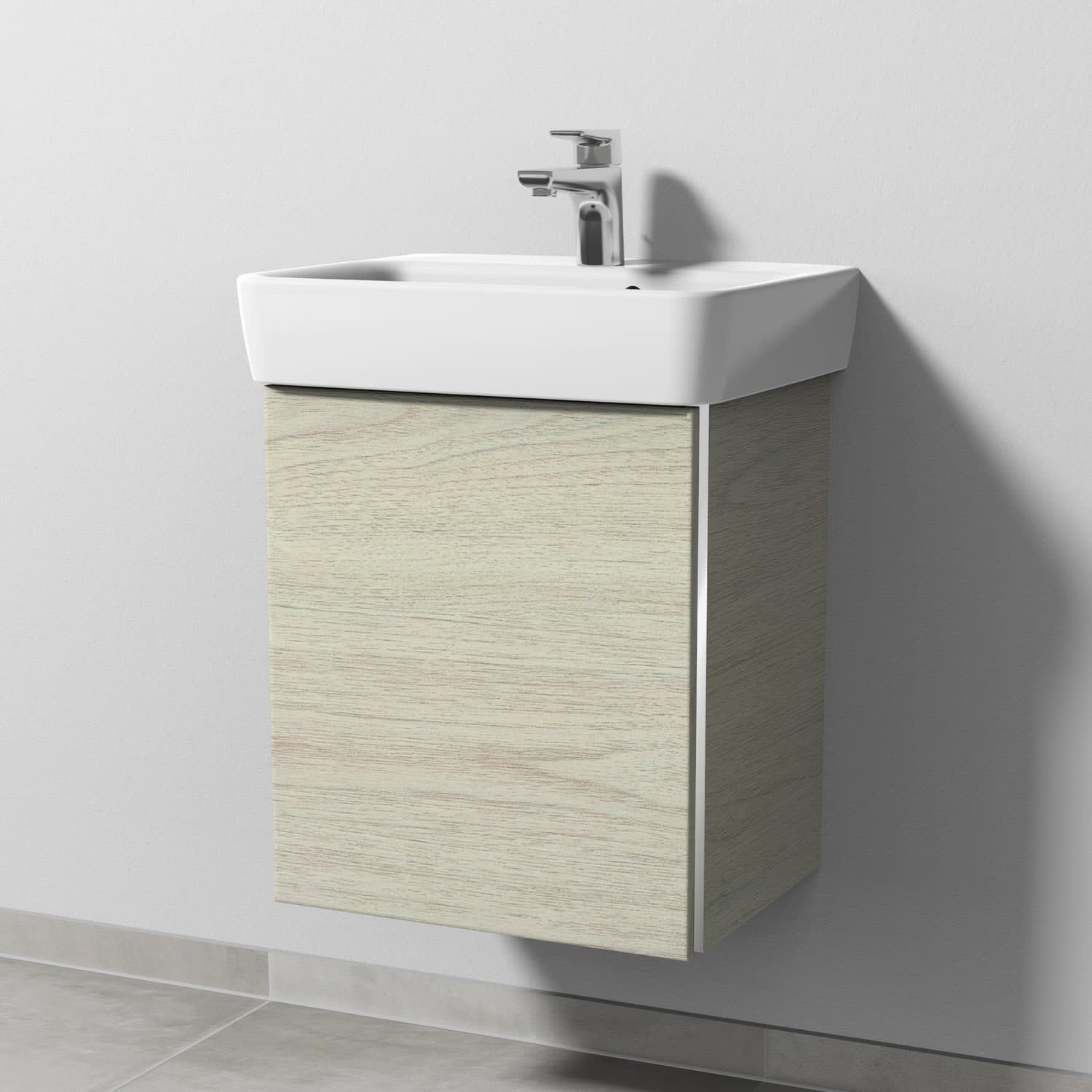 Sanipa 3way Waschtischunterbau für Keramik-Waschtisch Renova Plan 50 cm, 1 Tür, Anschlag links, mit Griffleiste