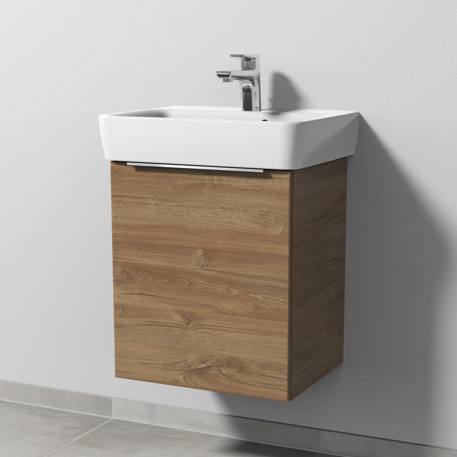 Sanipa 3way Waschtischunterbau für Keramik-Waschtisch Renova Plan 50 cm, 1 Tür, Anschlag links, mit Aufsatzgriff