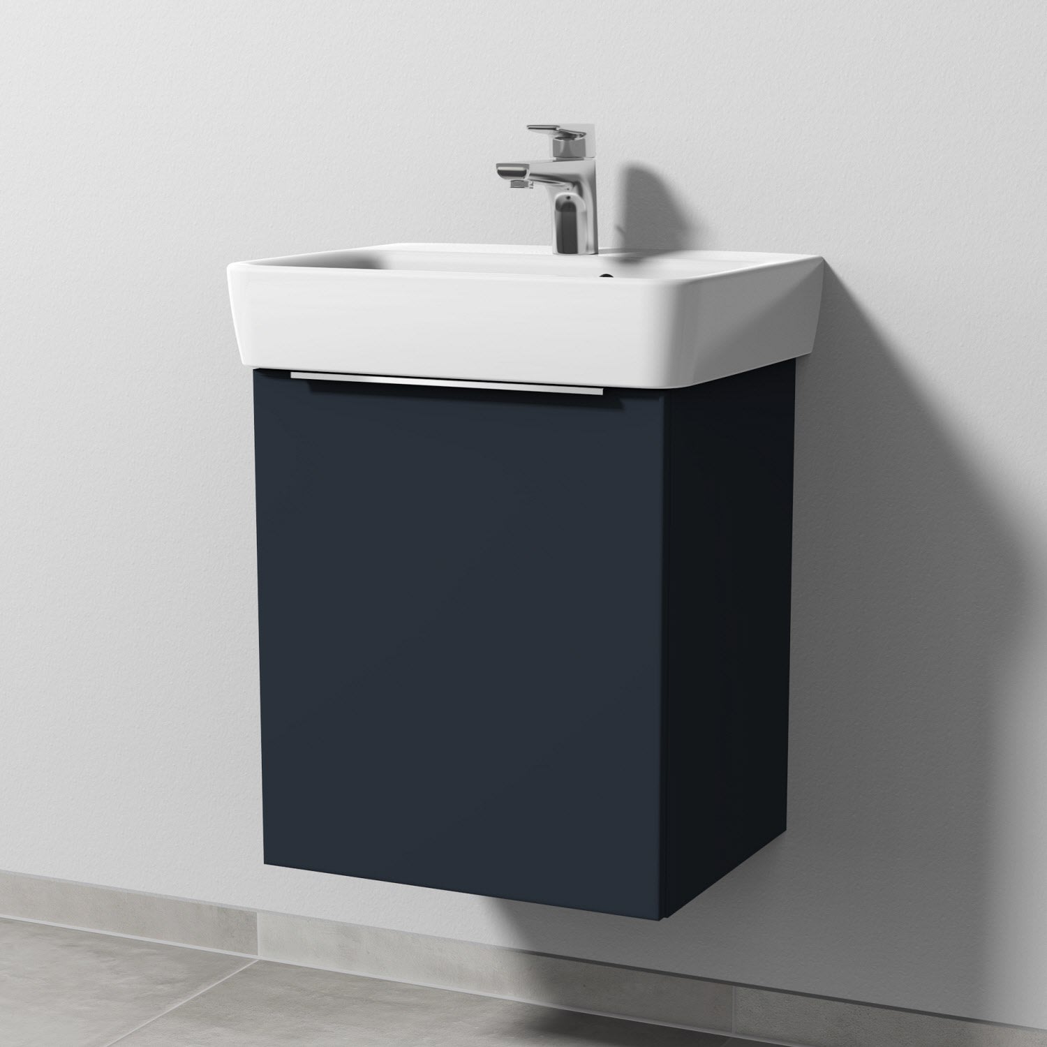 Sanipa 3way Waschtischunterbau für Keramik-Waschtisch Renova Plan 50 cm, 1 Tür, Anschlag links, mit Aufsatzgriff