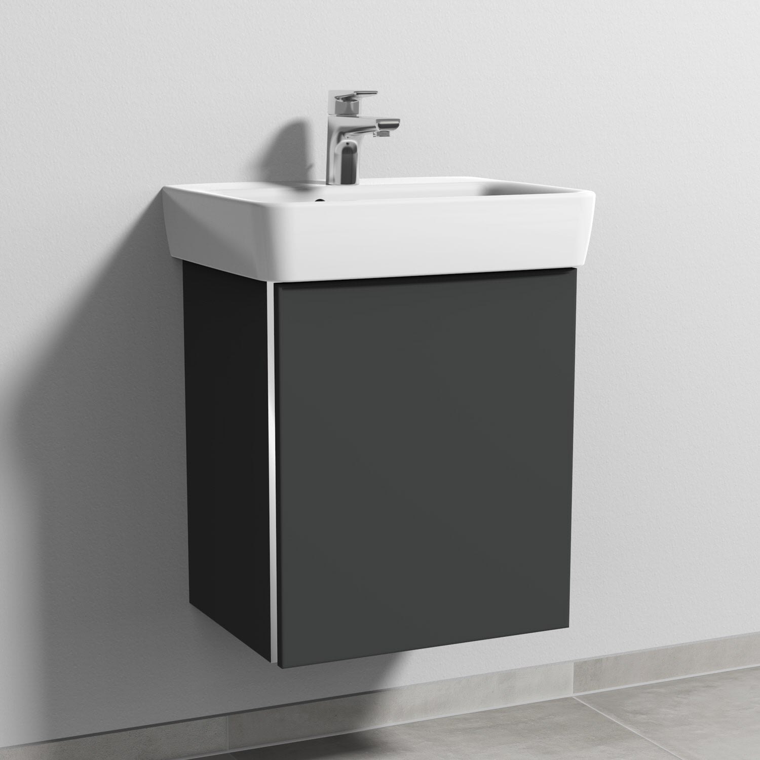 Sanipa 3way Waschtischunterbau für Keramik-Waschtisch Renova Plan 50 cm, 1 Tür, Anschlag rechts, mit Griffleiste