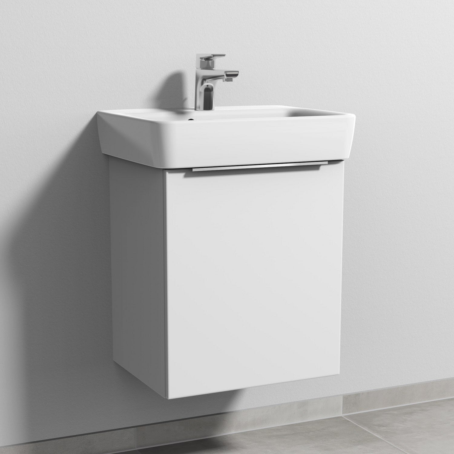 Sanipa 3way Waschtischunterbau für Keramik-Waschtisch Renova Plan 50 cm, 1 Tür, Anschlag rechts, mit Aufsatzgriff