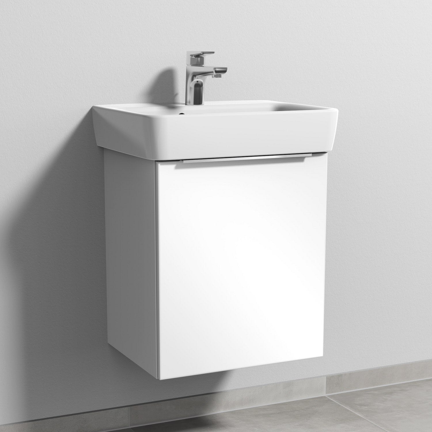 Sanipa 3way Waschtischunterbau für Keramik-Waschtisch Renova Plan 50 cm, 1 Tür, Anschlag rechts, mit Aufsatzgriff