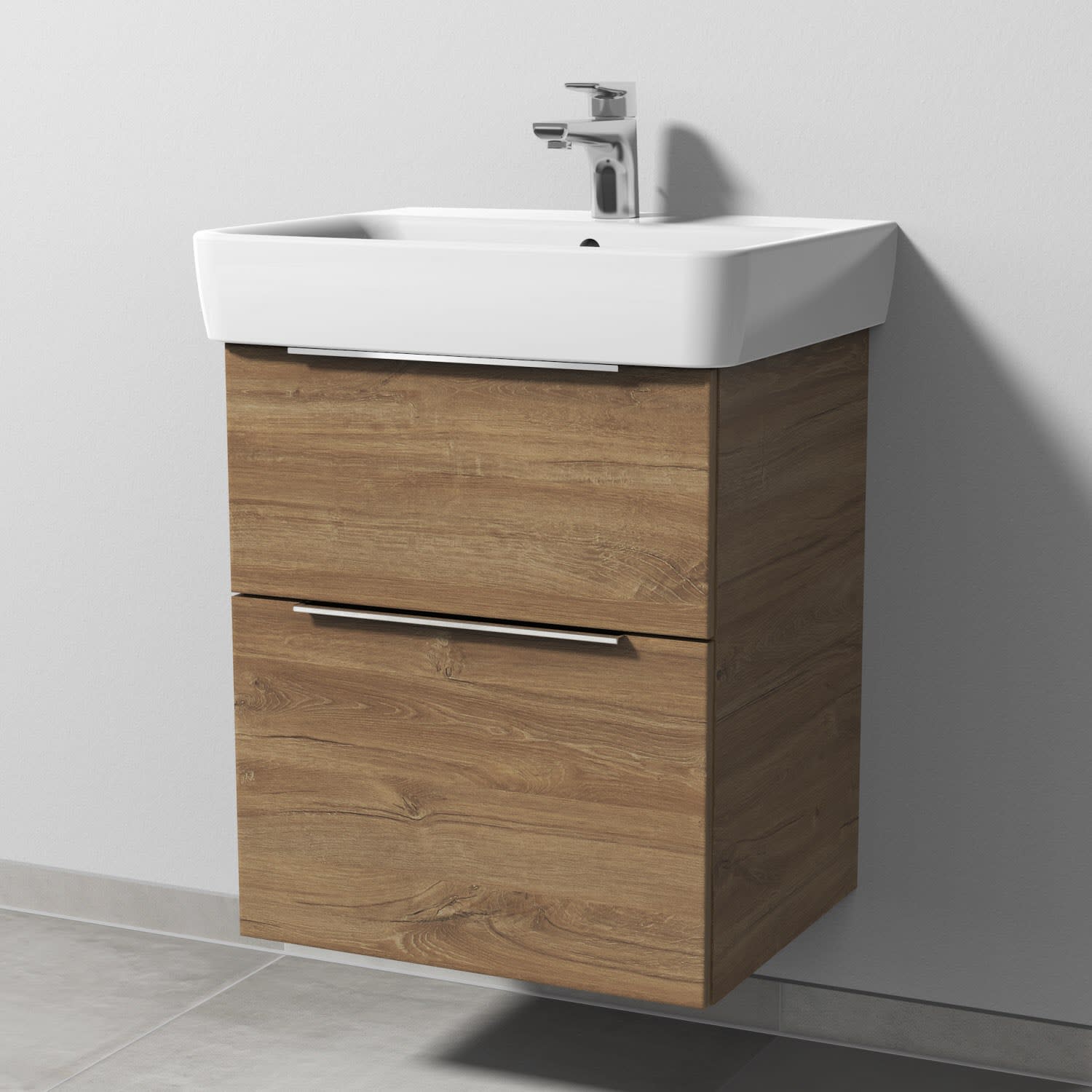 Sanipa 3way Waschtischunterbau für Keramik-Waschtisch Renova Plan 55 cm, 2 Auszüge mit Aufsatzgriff