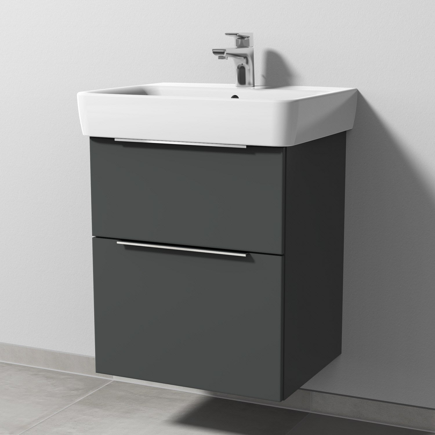 Sanipa 3way Waschtischunterbau für Keramik-Waschtisch Renova Plan 55 cm, 2 Auszüge mit Aufsatzgriff