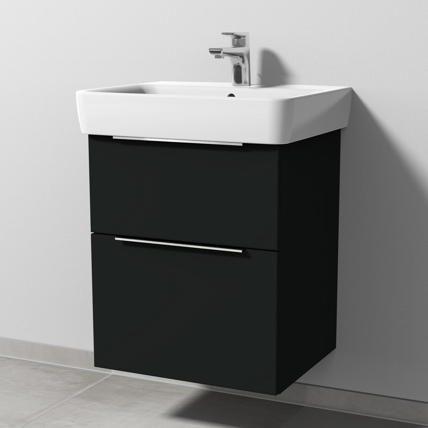 Sanipa 3way Waschtischunterbau für Keramik-Waschtisch Renova Plan 55 cm, 2 Auszüge mit Aufsatzgriff
