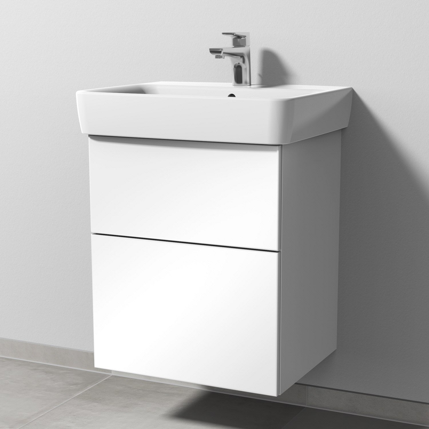 Sanipa 3way Waschtischunterbau für Keramik-Waschtisch Renova Plan 55 cm, 2 Auszüge mit Push to open