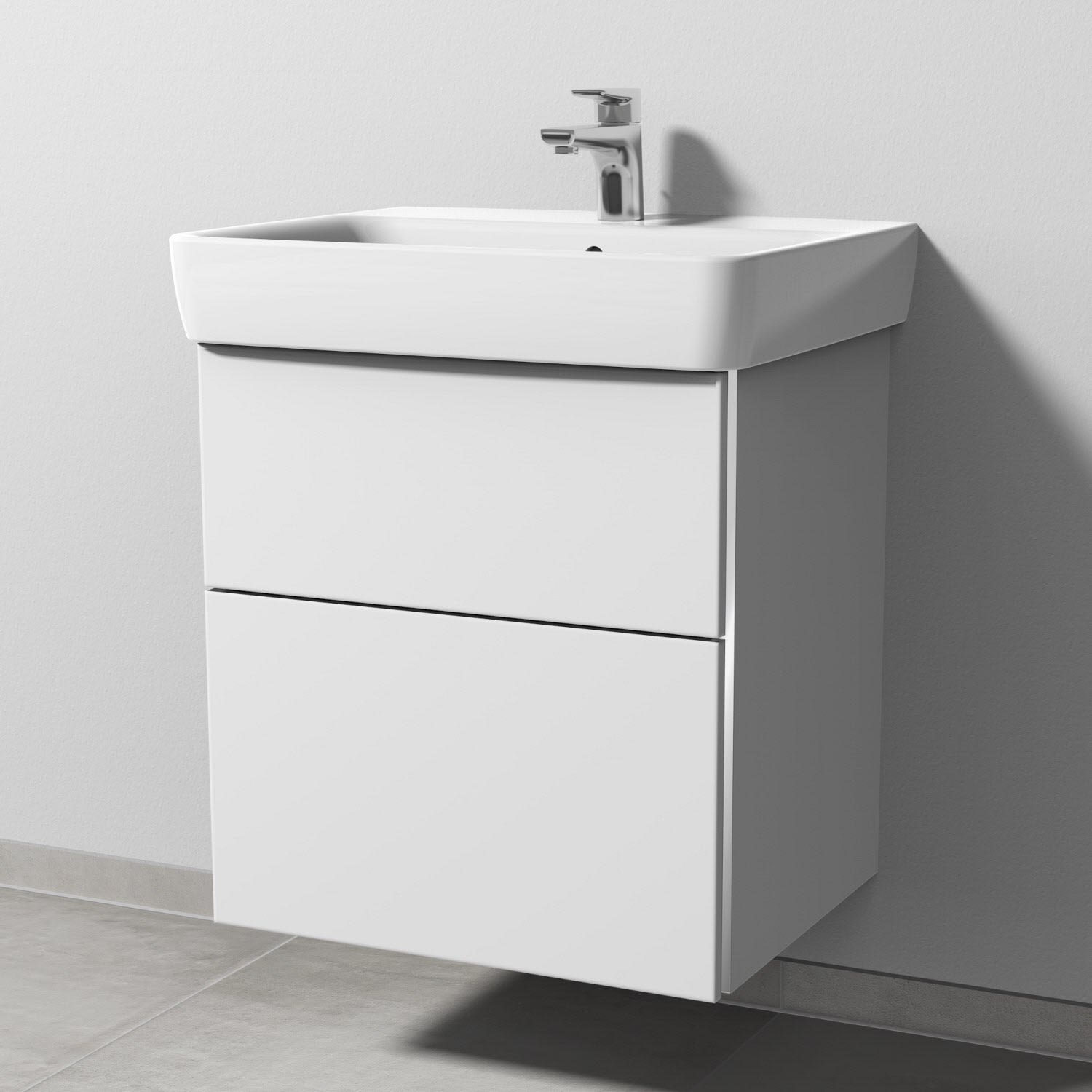 Sanipa 3way Waschtischunterbau für Keramik-Waschtisch Renova Plan 60 cm, 2 Auszüge mit Griffleisten