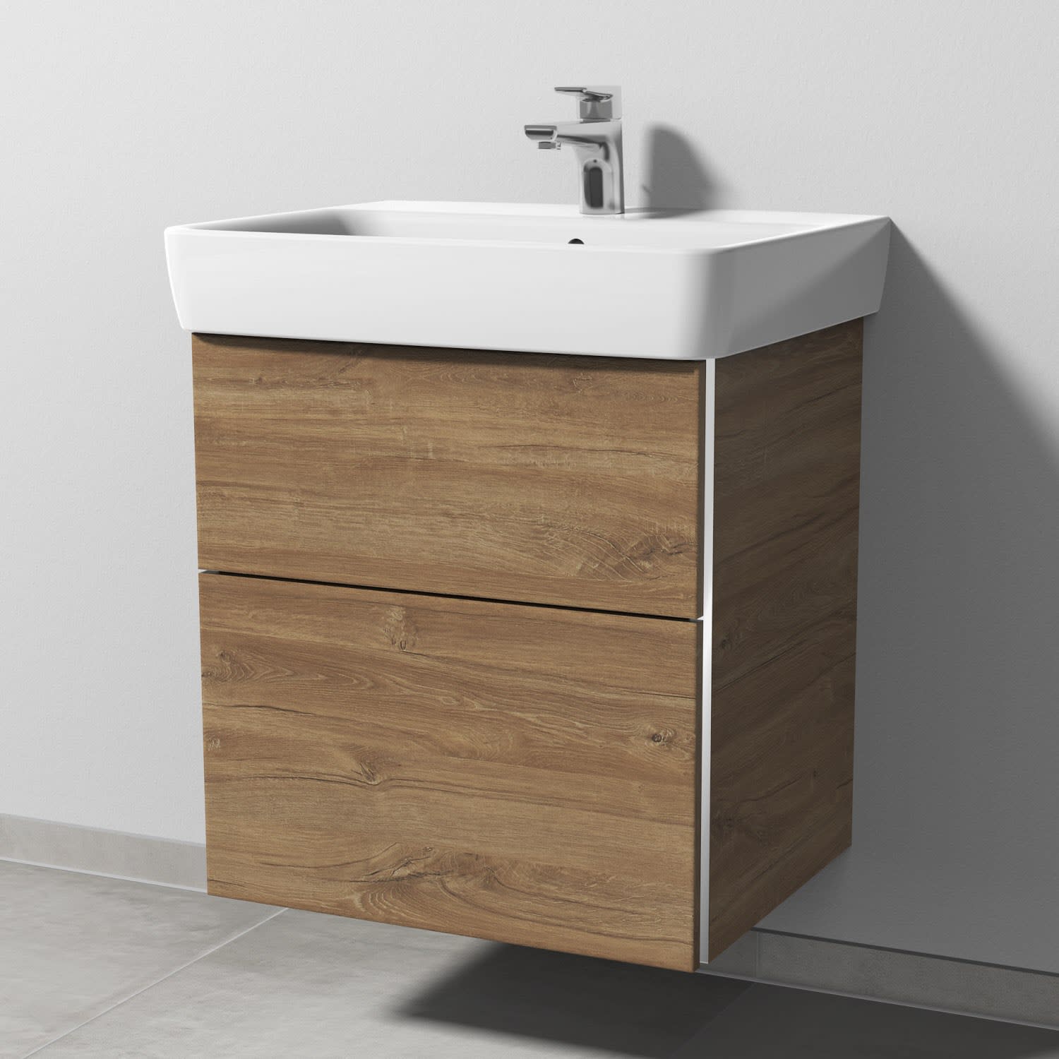 Sanipa 3way Waschtischunterbau für Keramik-Waschtisch Renova Plan 60 cm, 2 Auszüge mit Griffleisten