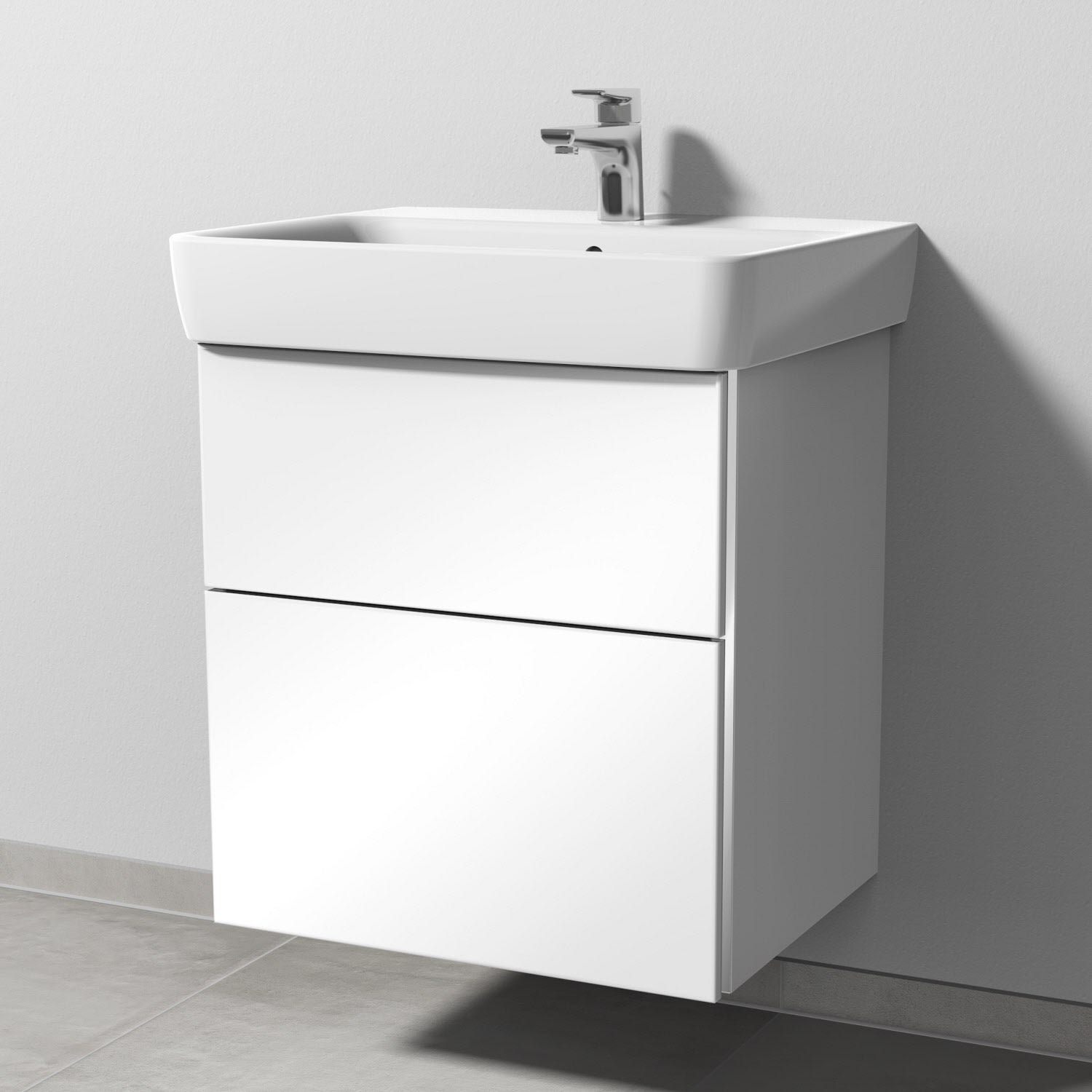 Sanipa 3way Waschtischunterbau für Keramik-Waschtisch Renova Plan 60 cm, 2 Auszüge mit Griffleisten