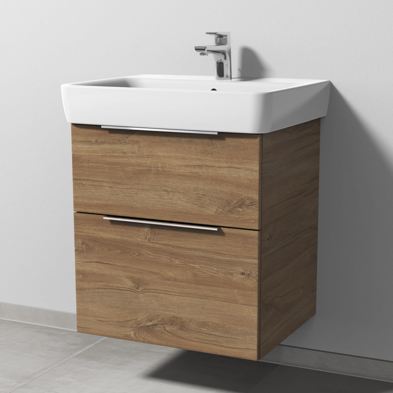 Sanipa 3way Waschtischunterbau für Keramik-Waschtisch Renova Plan 60 cm, 2 Auszüge mit Aufsatzgriff