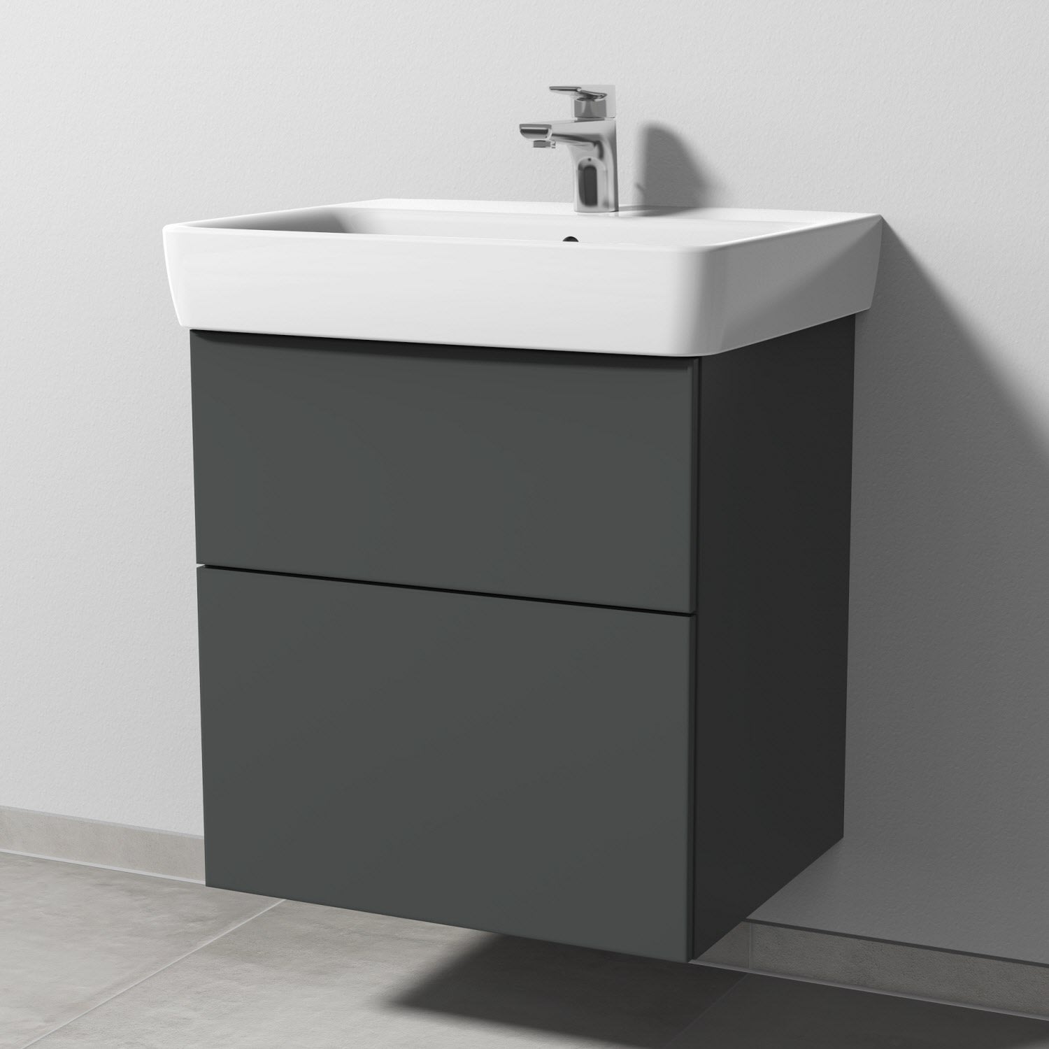 Sanipa 3way Waschtischunterbau für Keramik-Waschtisch Renova Plan 60 cm, 2 Auszüge mit Push to open
