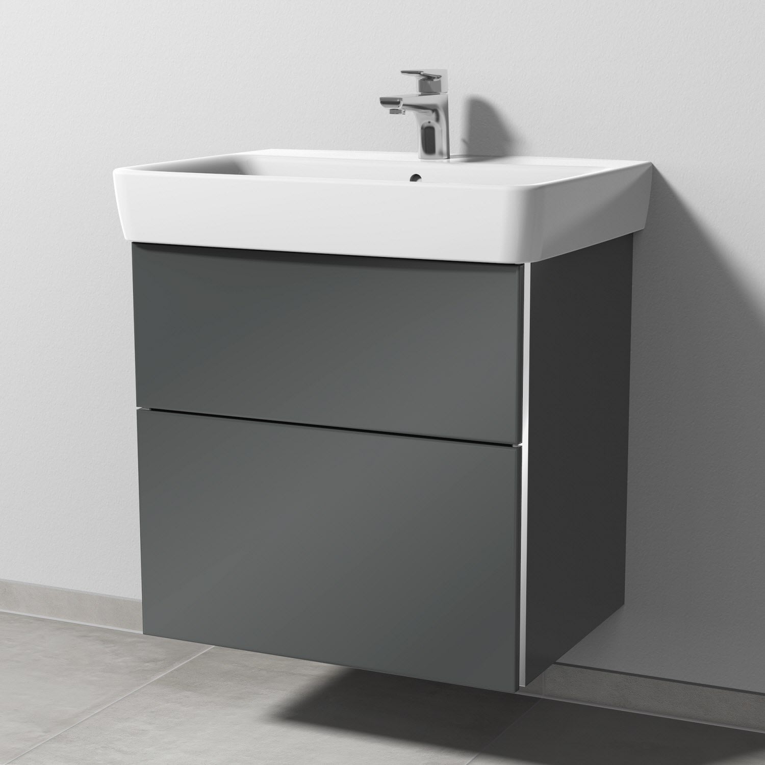 Sanipa 3way Waschtischunterbau für Keramik-Waschtisch Renova Plan 65 cm, 2 Auszüge mit Griffleisten
