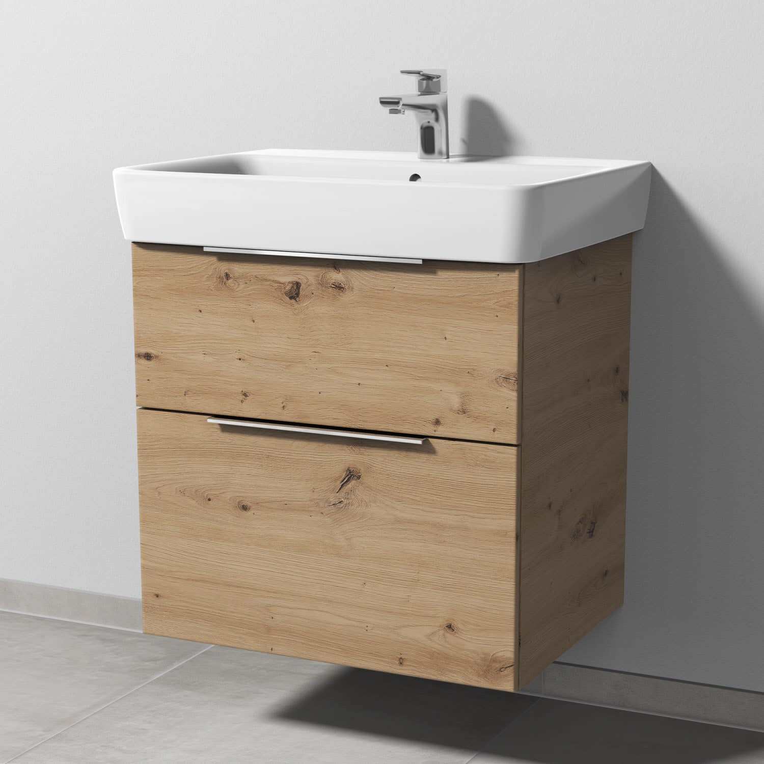 Sanipa 3way Waschtischunterbau für Keramik-Waschtisch Renova Plan 65 cm, 2 Auszüge mit Aufsatzgriff